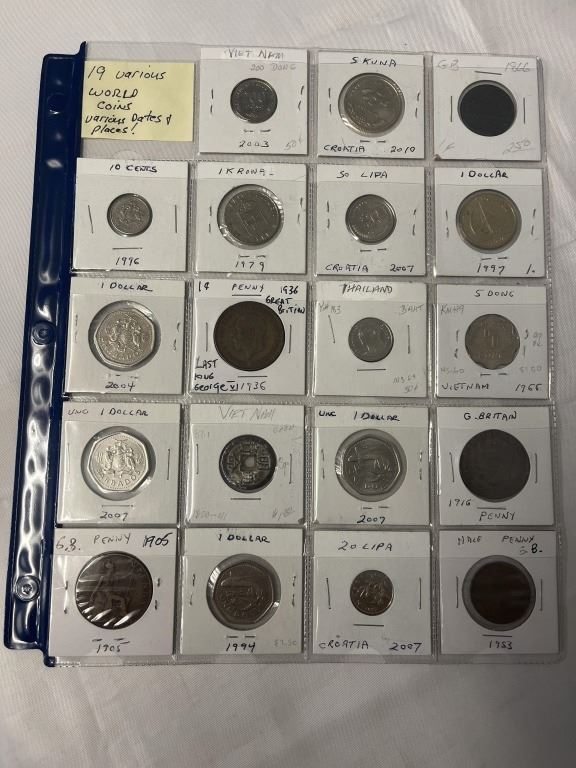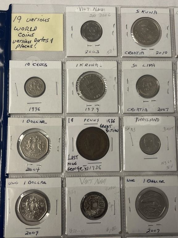 19 VARIOUS WORLD COINS, VARIOUS DATES