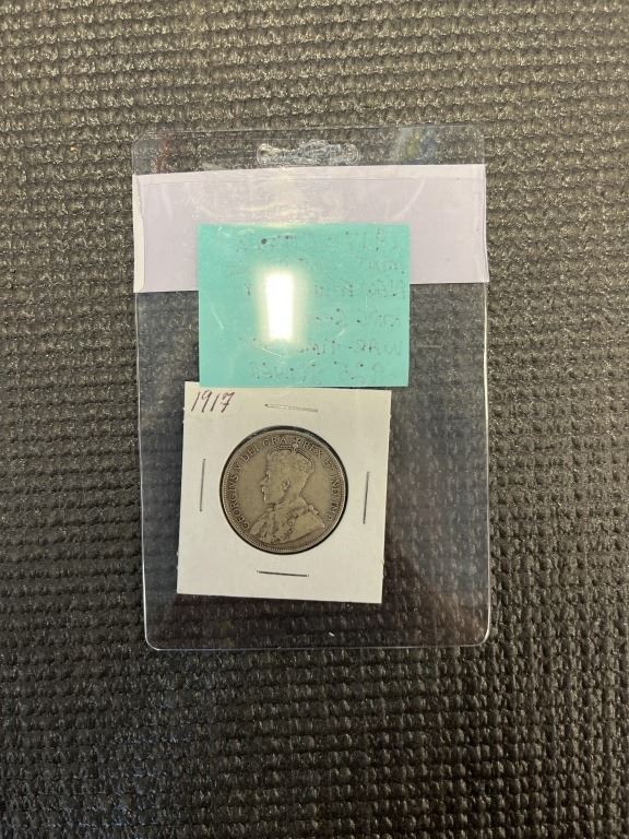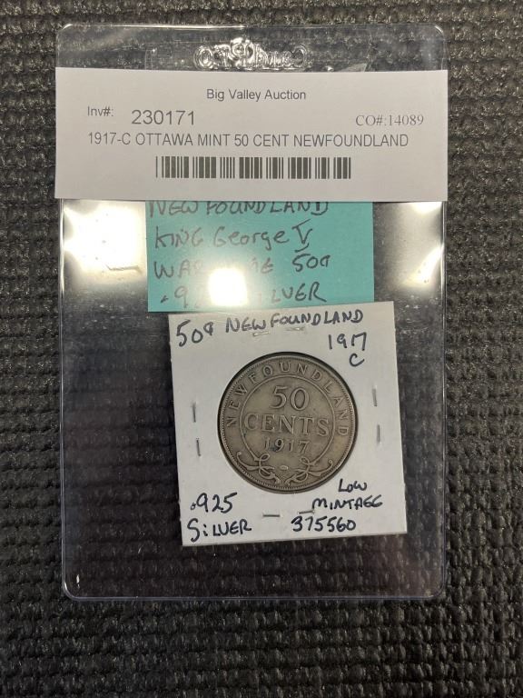 1917-C OTTAWA MINT 50 CENT NEWFOUNDLAND KING GEORGE V WAR TIME 50 CENT .925 SILVER
