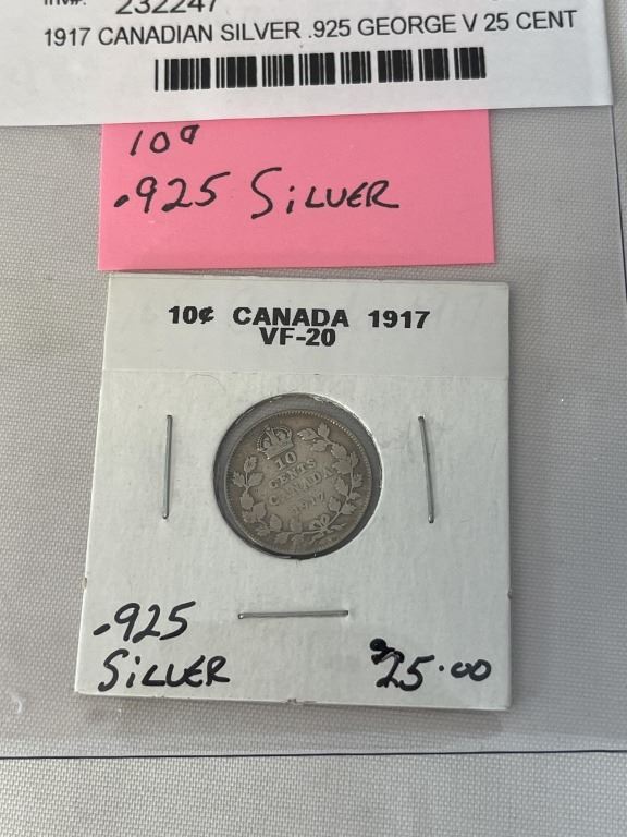 1917 CANADIAN SILVER .925 GEORGE V 25 CENT