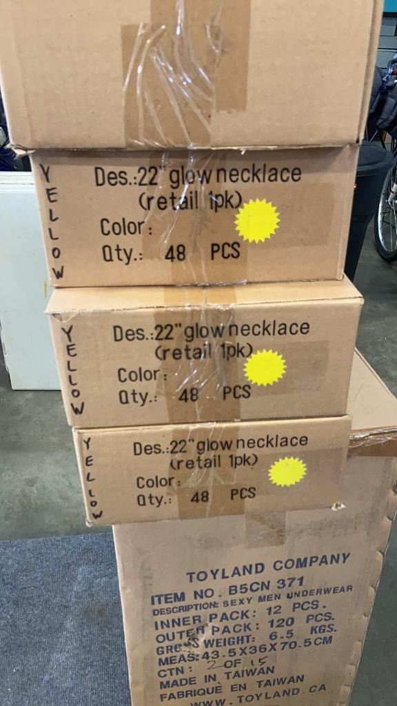 192 NEW GLOW NECKLACES YELLOW AND BOX OF 120 NEW CANADIAN G STRINGS