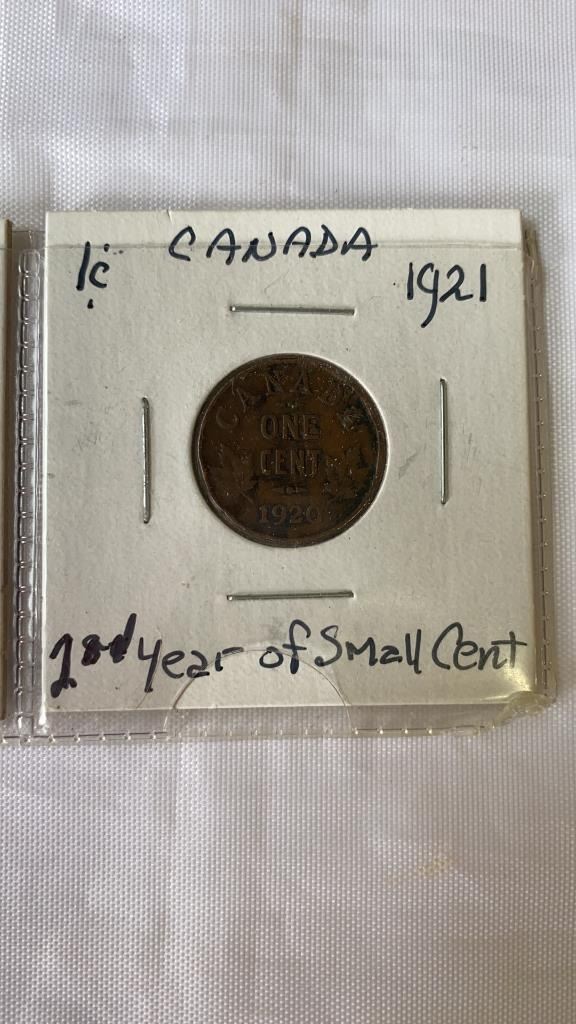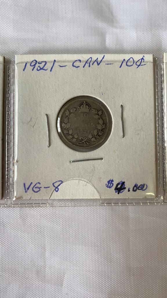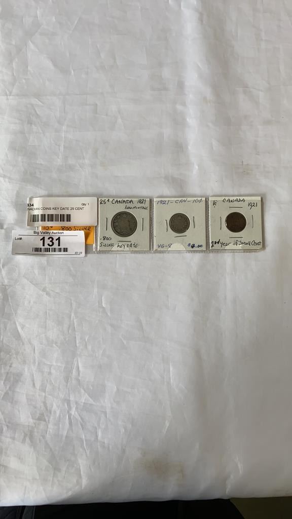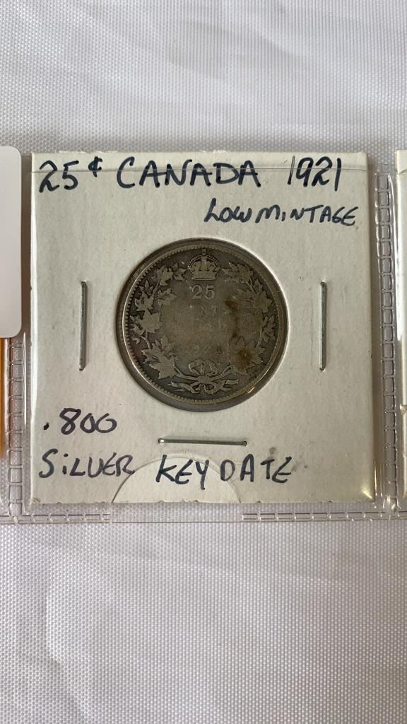 1921 CANADIAN COINS KEY DATE 25 CENT AND 10 CENT .800 SILVER AND 1921 SMALL CENT