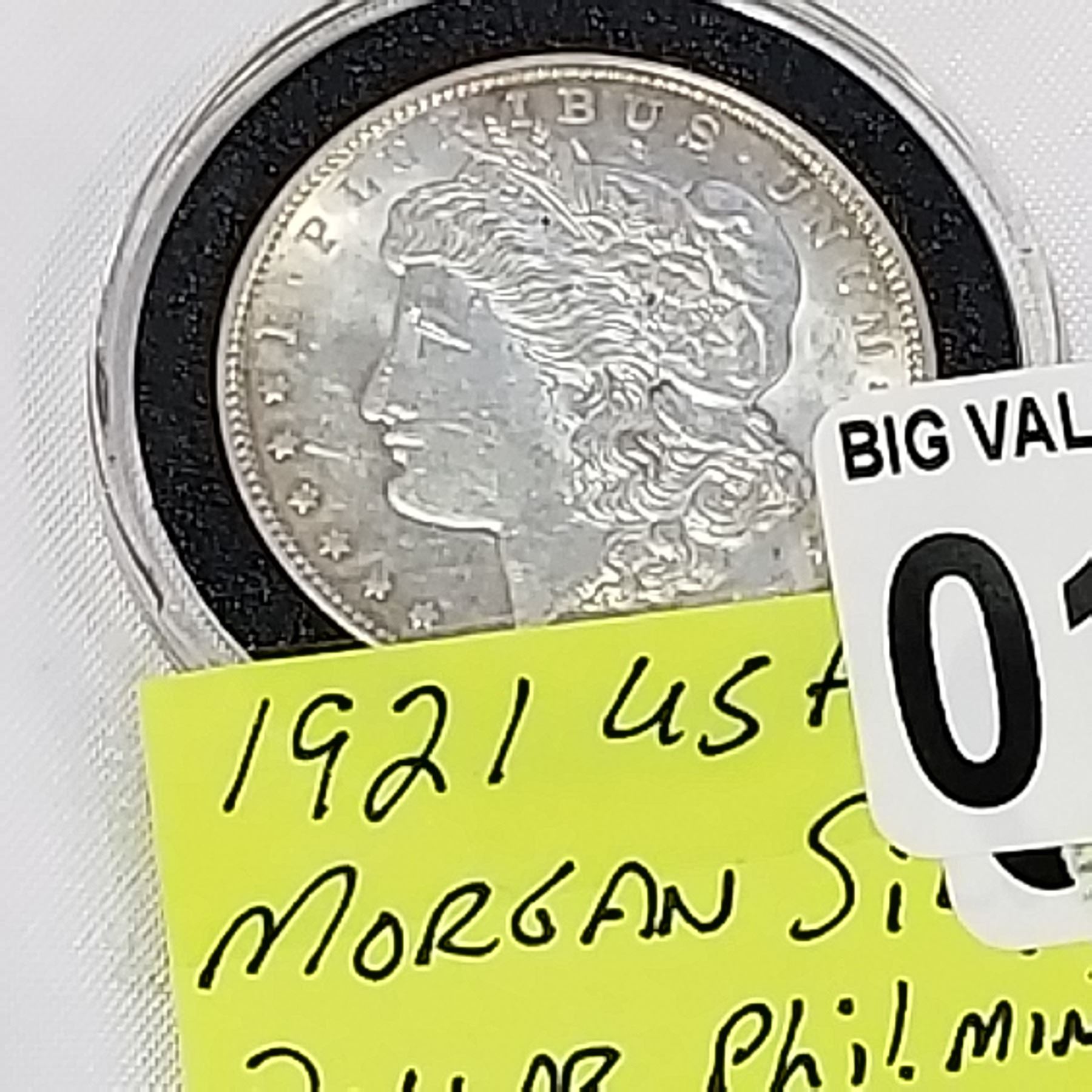1921 MORGAN SILVER DOLAR, PHILADELPHIA MINT .900 SILVER