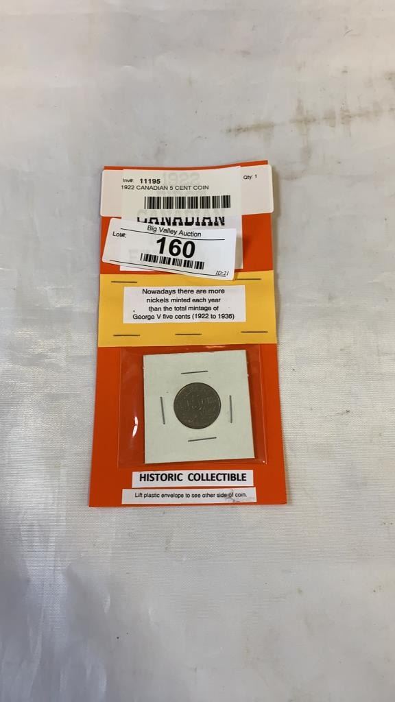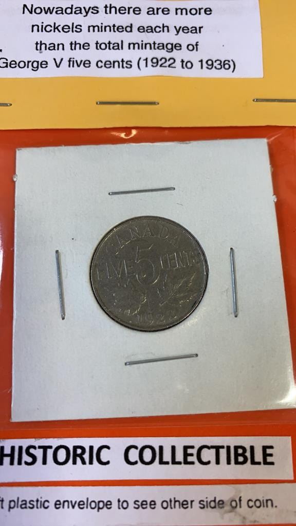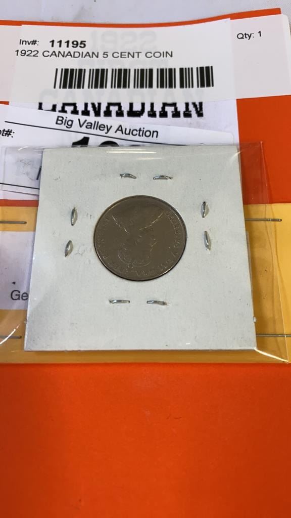 1922 CANADIAN 5 CENT COIN