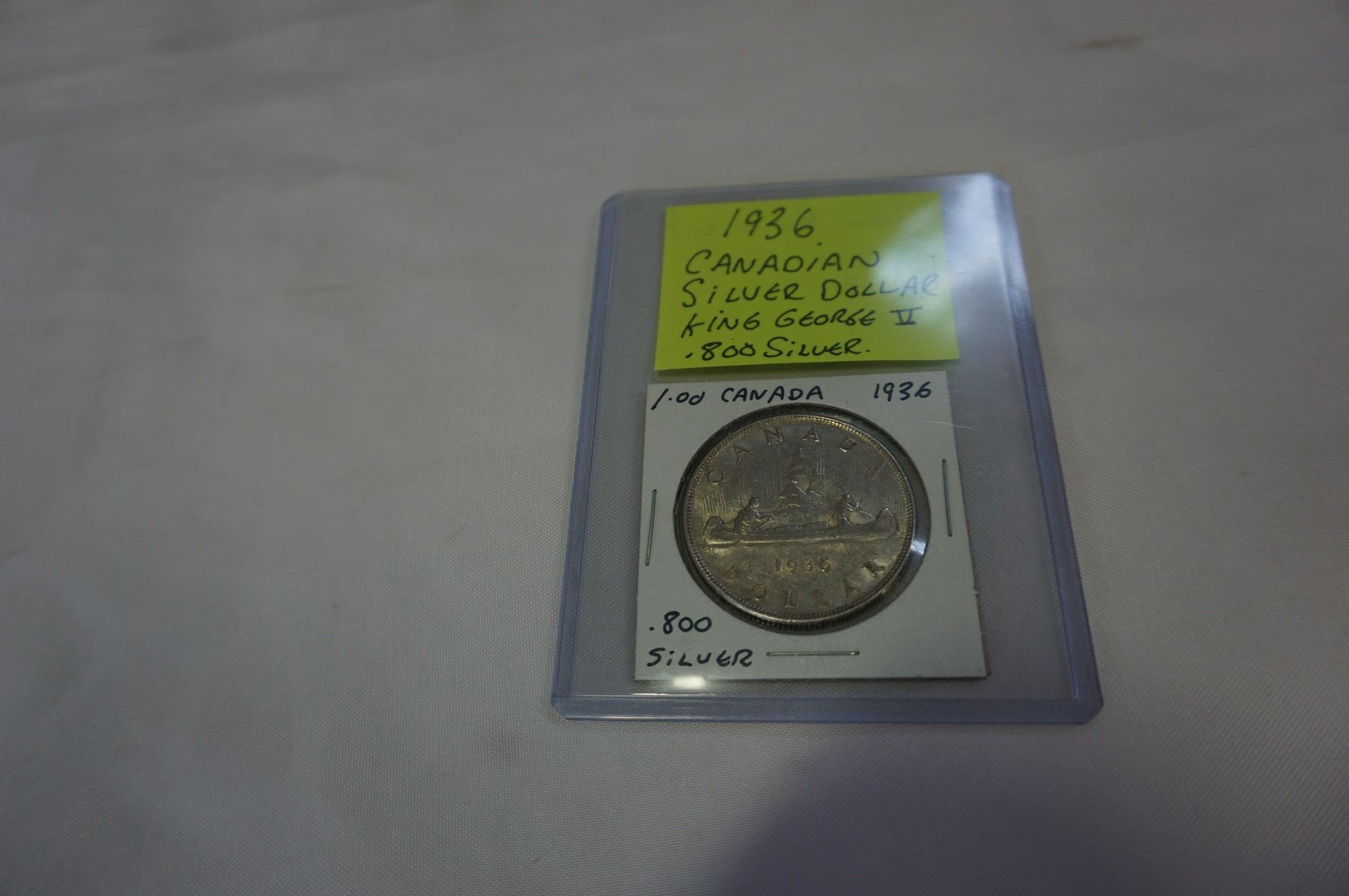 1936 CANADIAN SILVER DOLLAR KING GEORGE V .800 SILVER