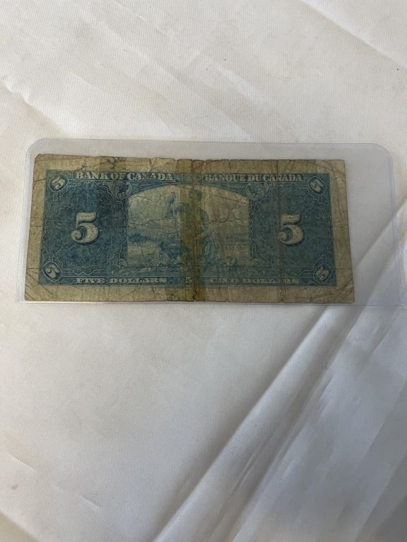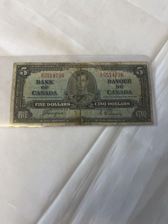 1937 BANK OF CANADA KING GEORGE VI $5 BILL - JAN 2, 1937
