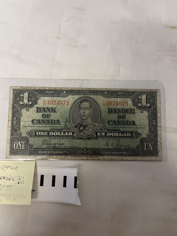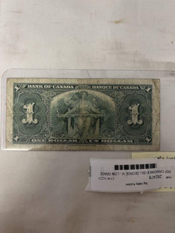 1937 CANADIAN $1 BILL GEORGE VI - LOW GRADE