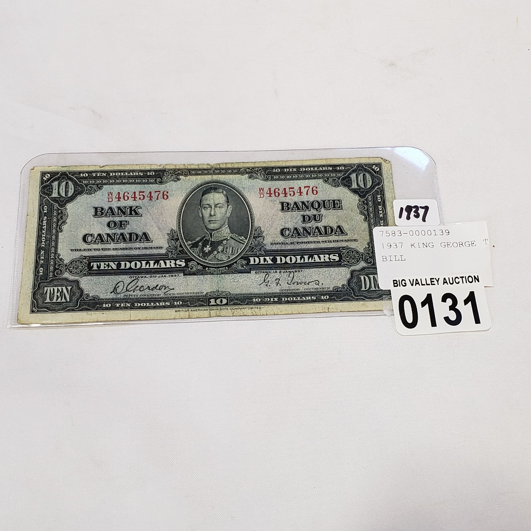 1937 KING GEORGE TEN DOLLAR BILL