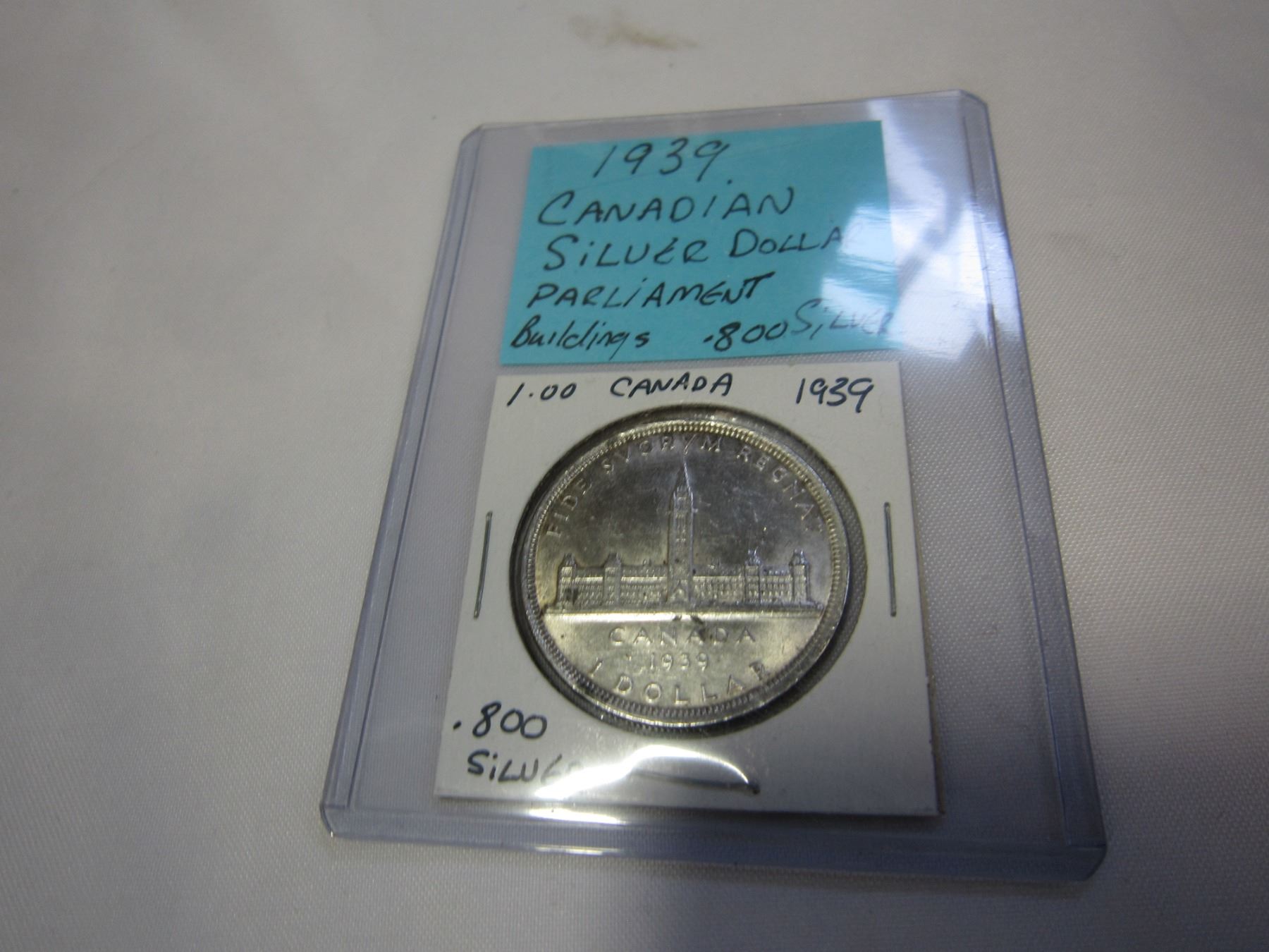 1939 CANADIAN SILVER DOLLAR .800 PARLIAMENT