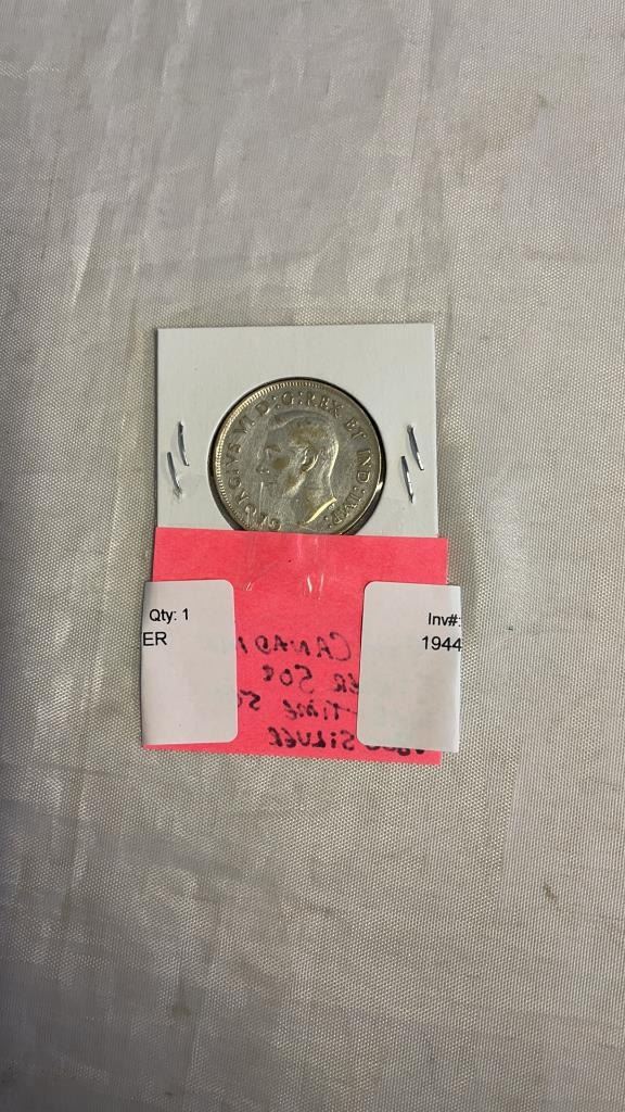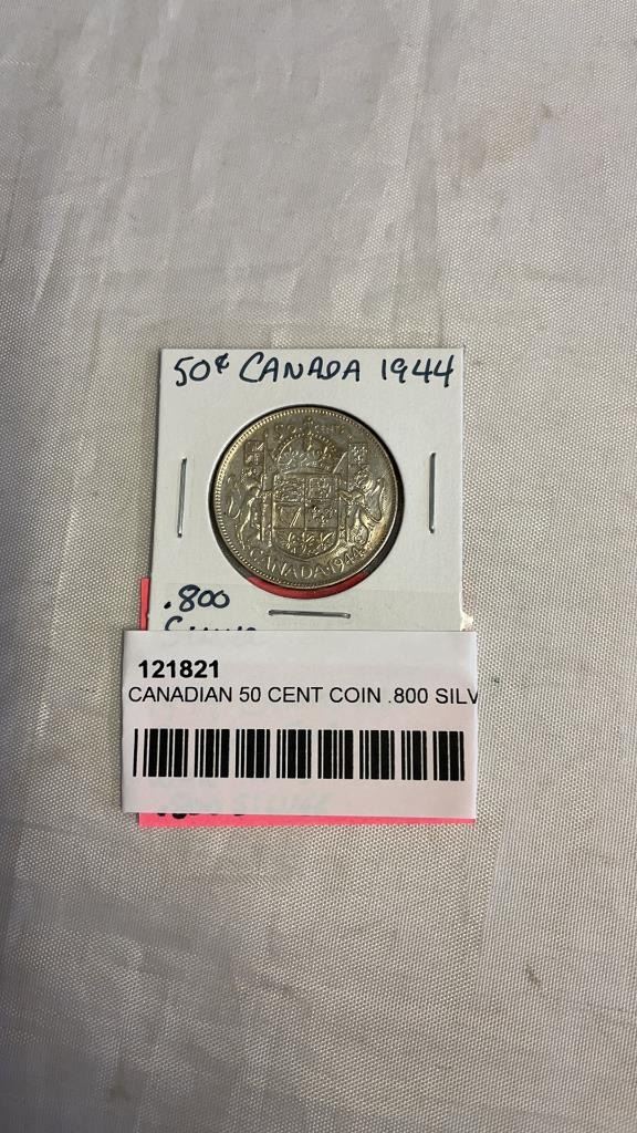 1944 CANADIAN 50 CENT COIN .800 SILVER