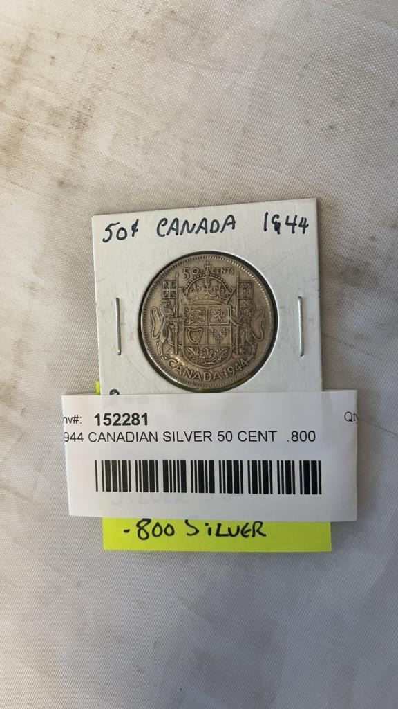 1944 CANADIAN SILVER 50 CENT .800 SILVER