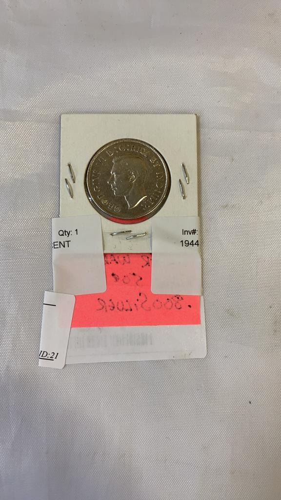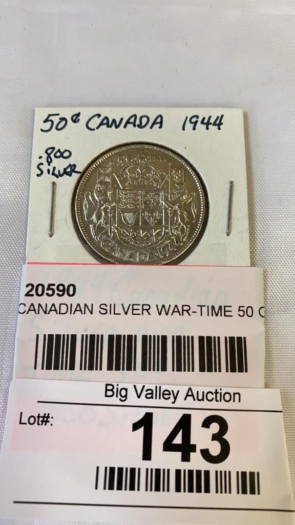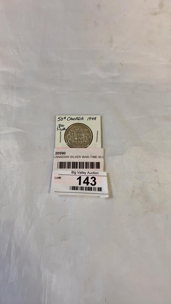 1944 CANADIAN SILVER WAR-TIME 50 CENT .800 SILVER
