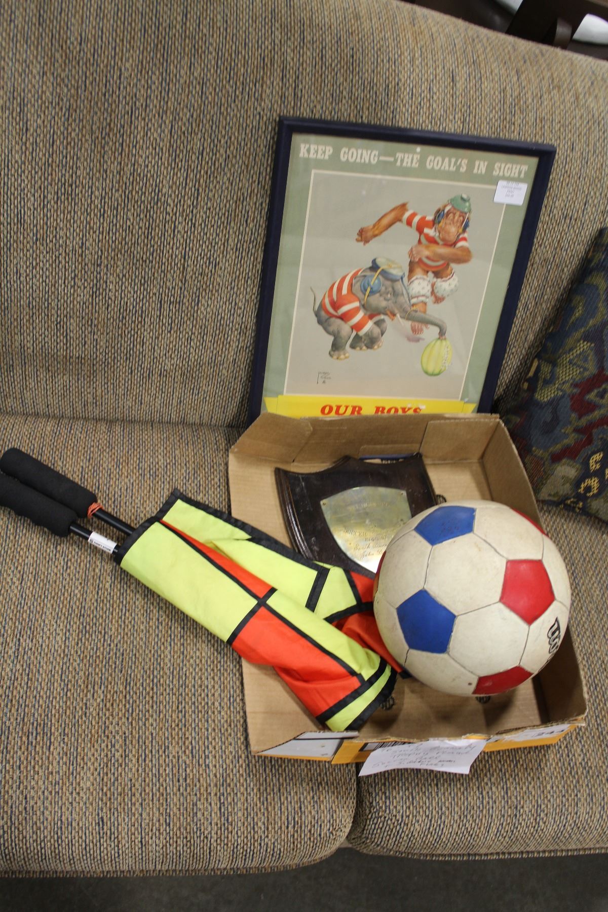1946 BURNABY SOCCER PLAQUE VINTAGE SOCCER BALL AND SIDELINE FLAGS