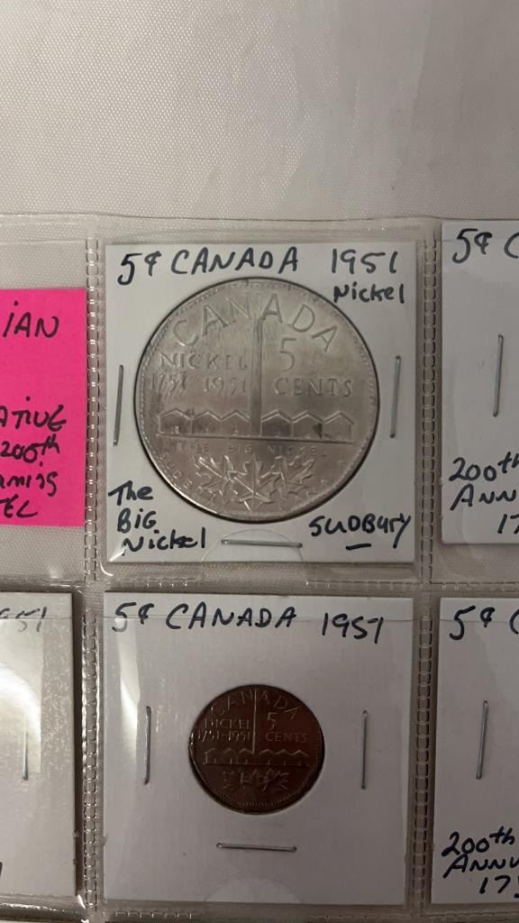 1951 CANADIAN COMMEMORATIVE PIECE ON THE 200TH ANNIVERSARY OF NAMING THE ELEMENT OF NICKEL WITH 22 REGULAR SIZE NICKELS
