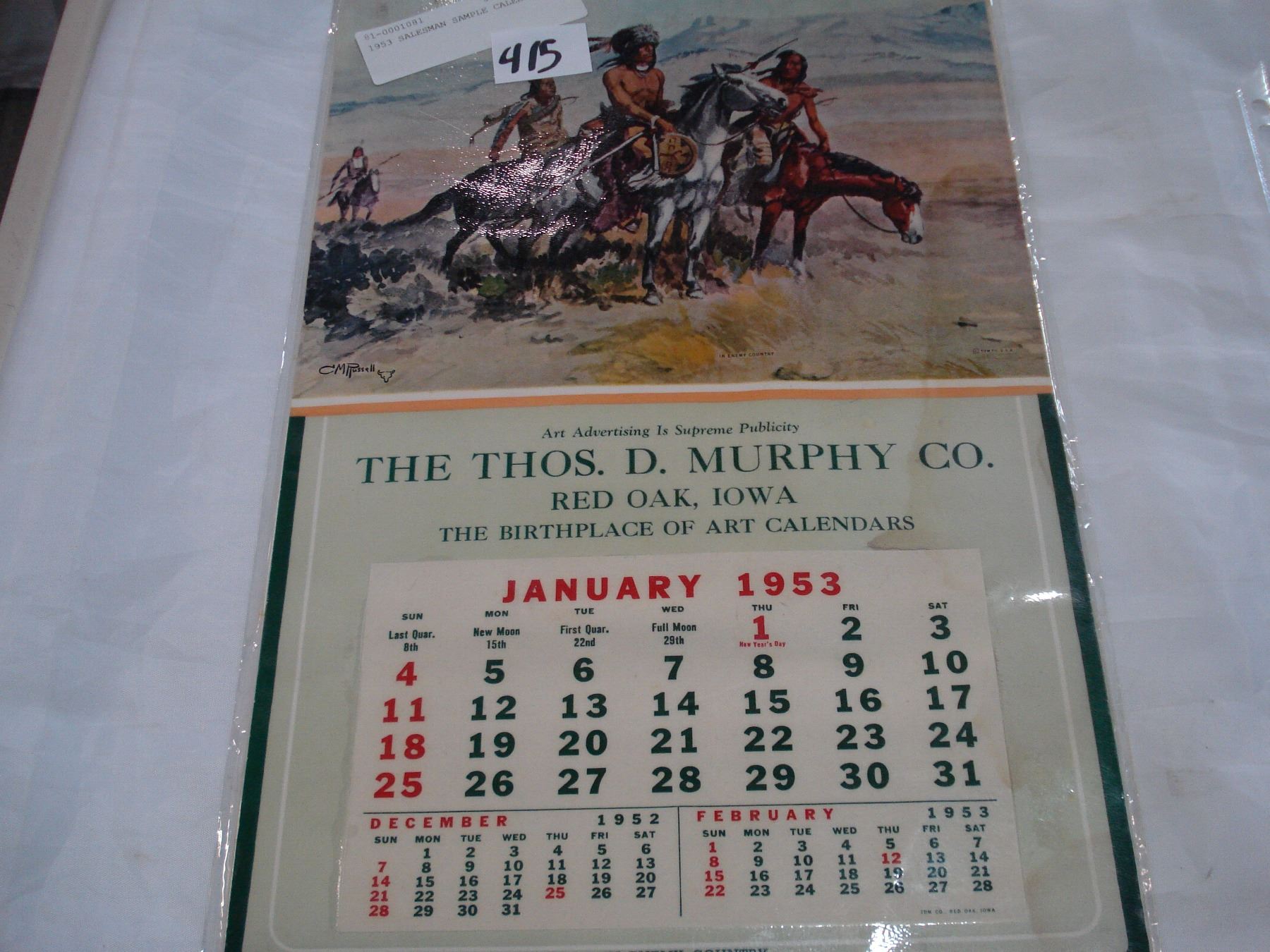 1953 SALESMAN SAMPLE CALENDAR