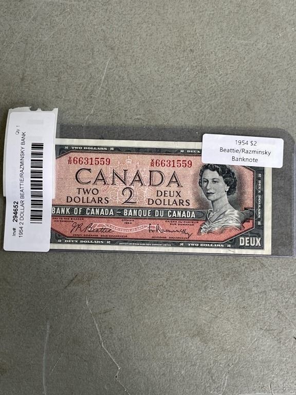 1954 2 DOLLAR BEATTIE/RAZMINSKY BANK NOTE