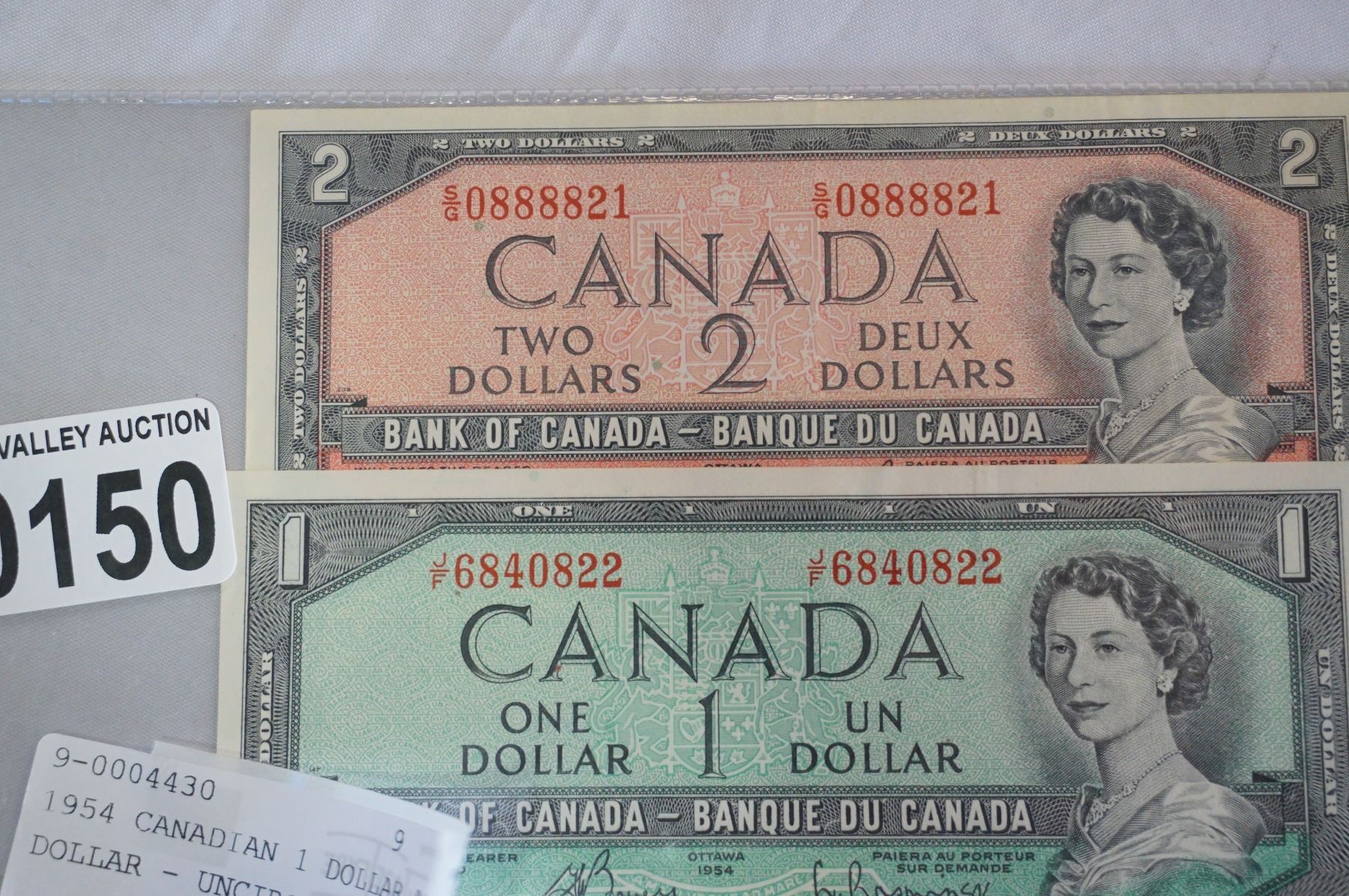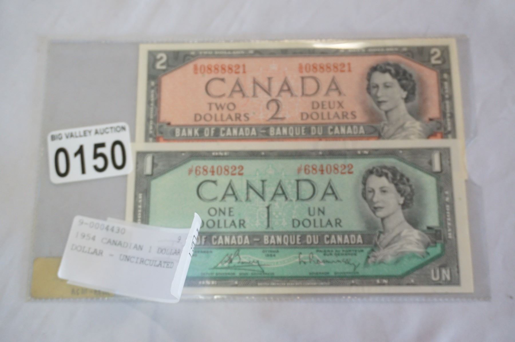 1954 CANADIAN 1 DOLLAR AND 2 DOLLAR - UNCIRCULATED