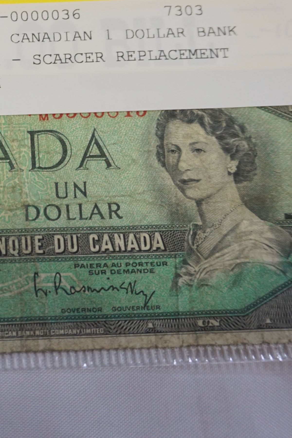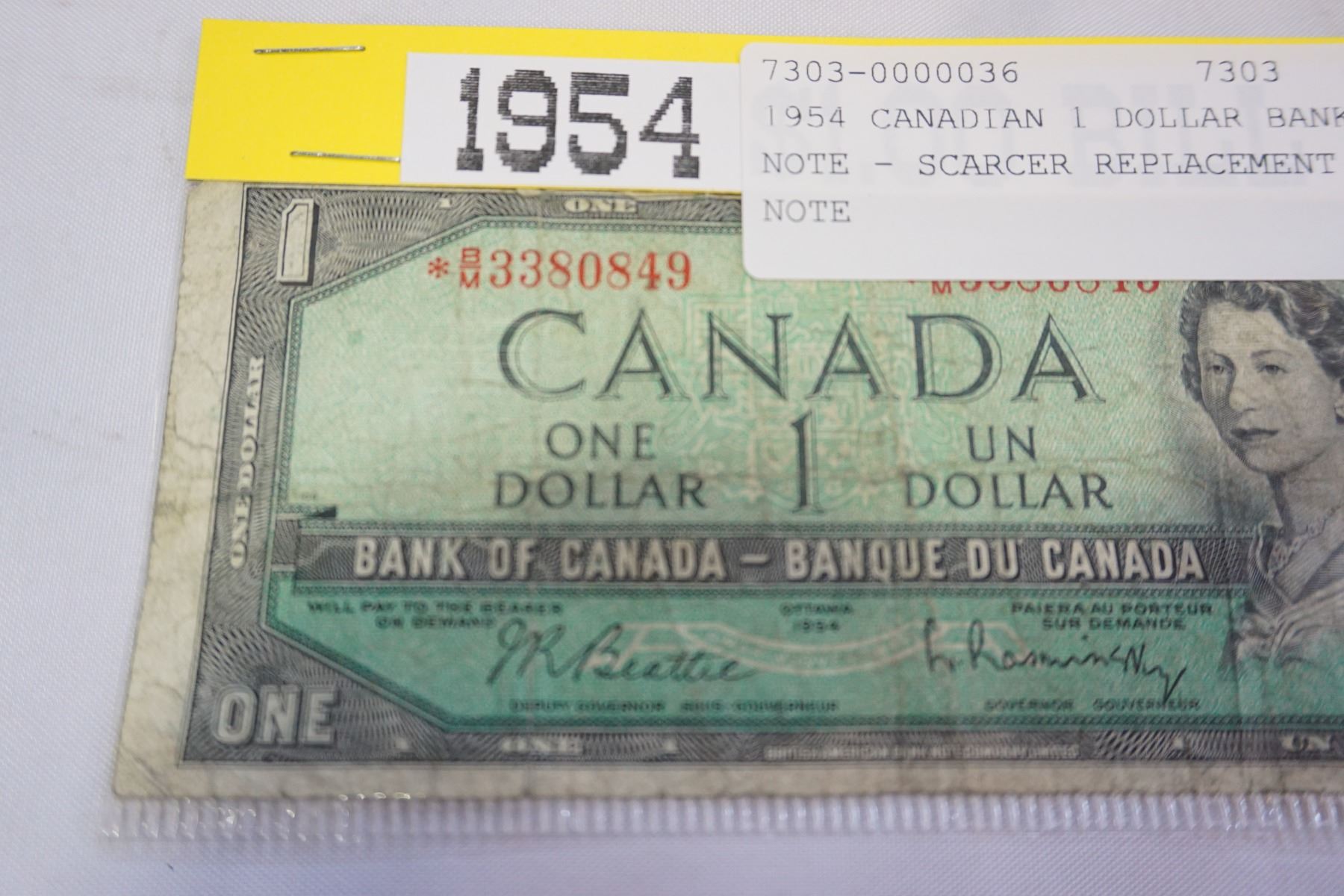 1954 CANADIAN 1 DOLLAR BANK NOTE - SCARCER REPLACEMENT NOTE