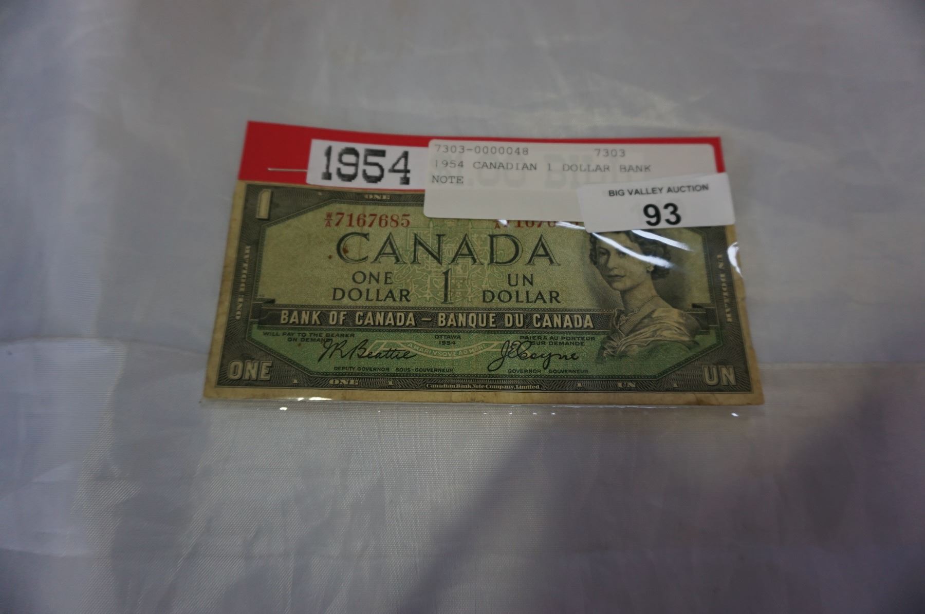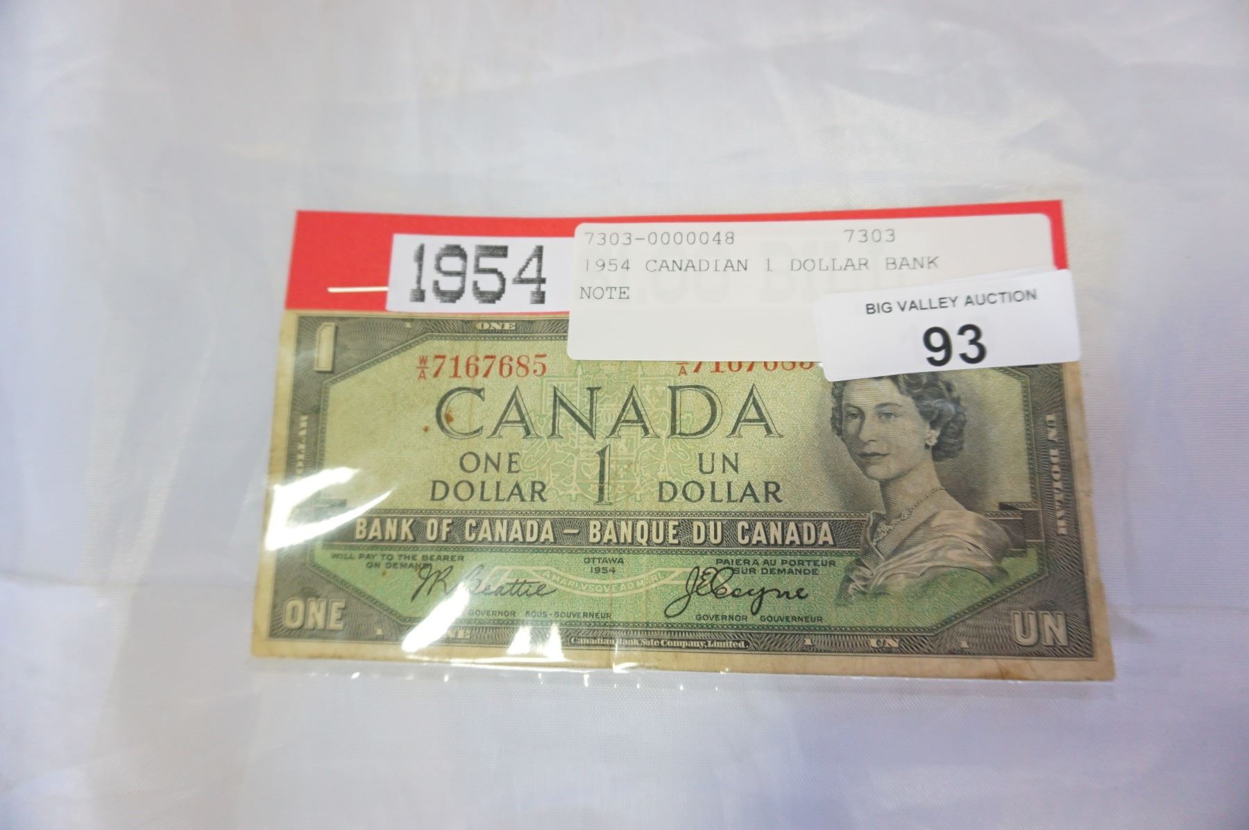 1954 CANADIAN 1 DOLLAR BANK NOTE