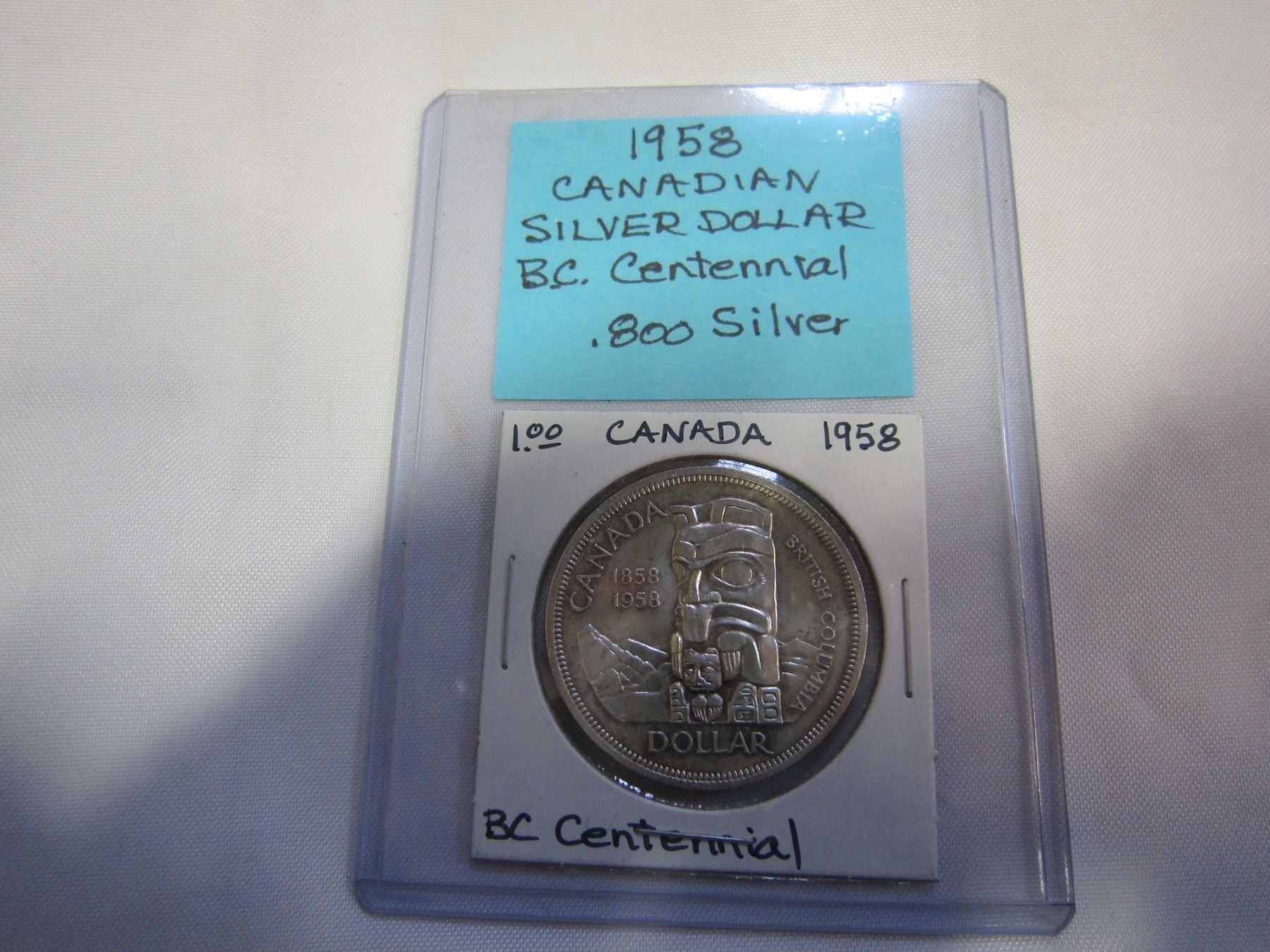 1958 CANADIAN SILVER DOLLAR .800 BC CENTENNIAL
