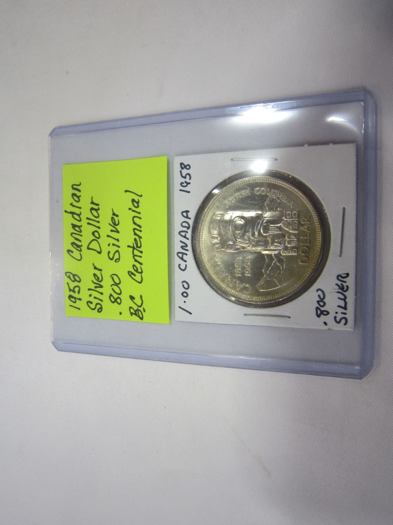 1958 CANADIAN SILVER DOLLAR .800 SILVER BC CENTENNIAL