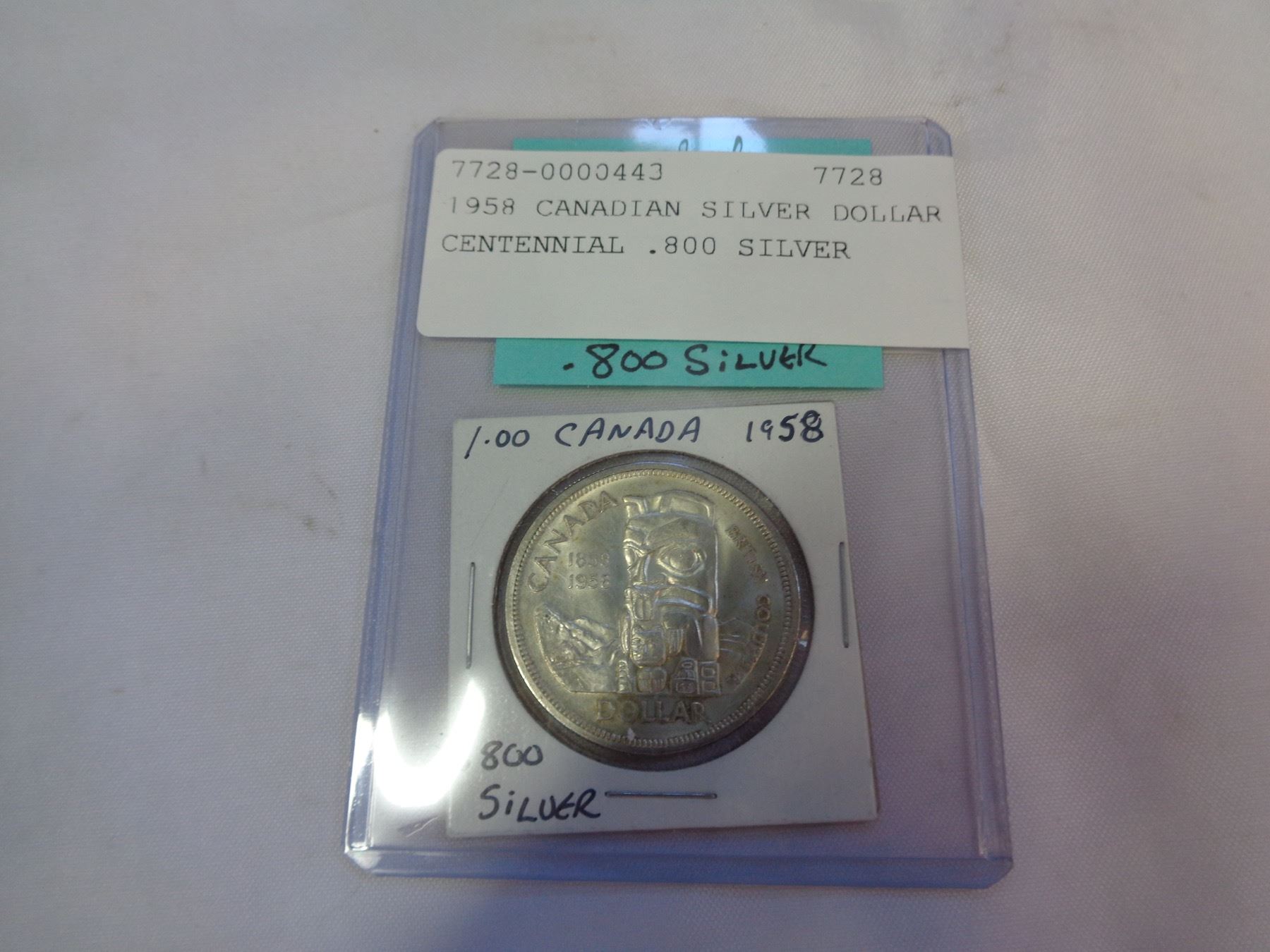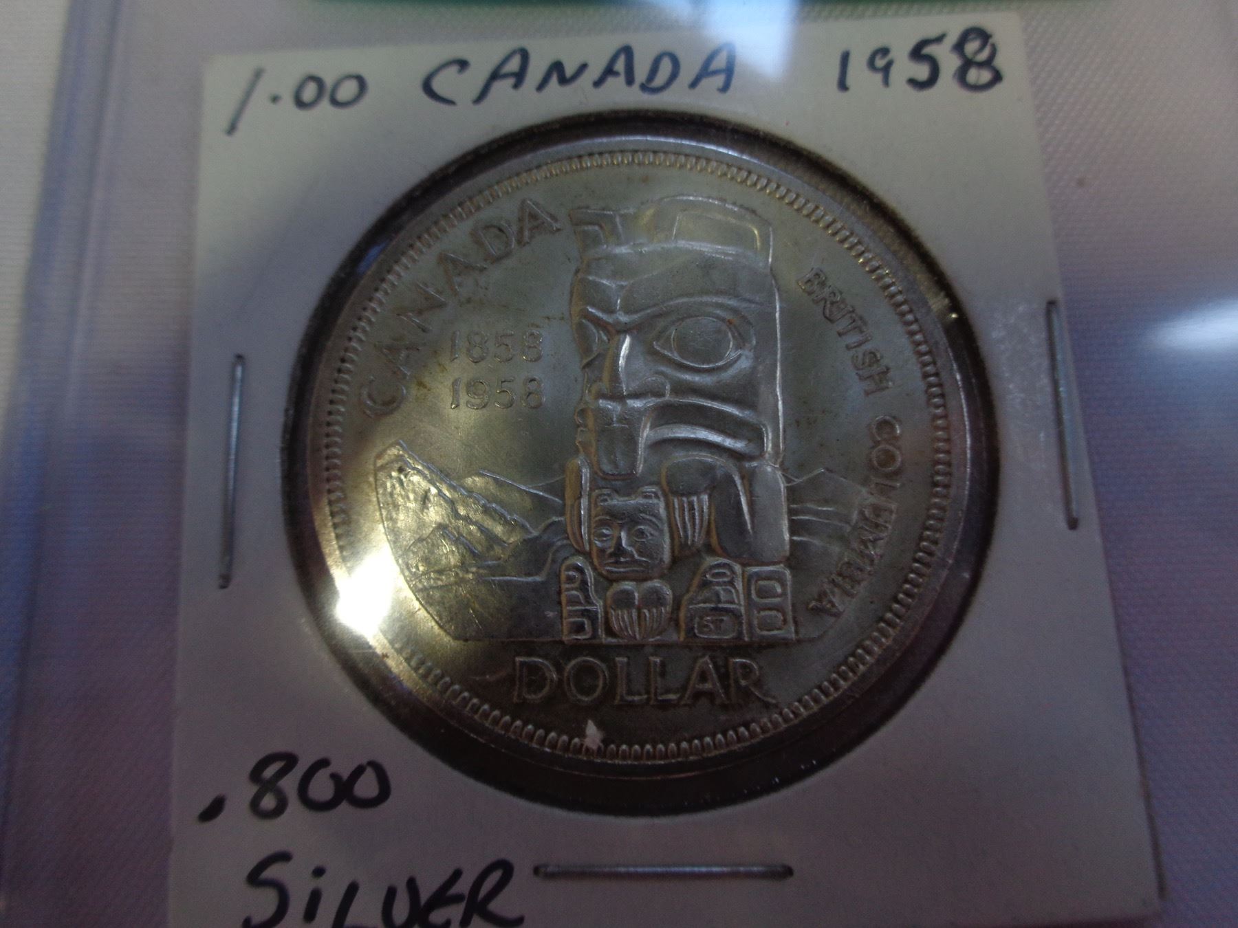 1958 CANADIAN SILVER DOLLAR BC CENTENNIAL .800 SILVER