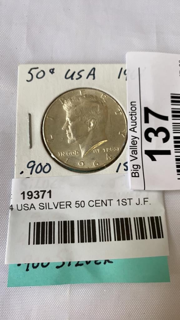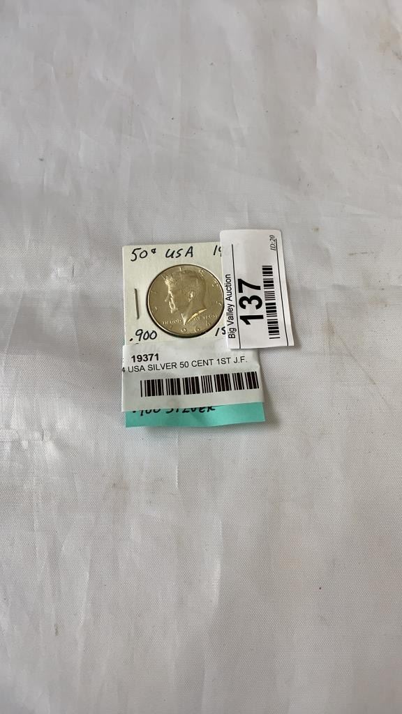 1964 USA SILVER 50 CENT 1ST J.F. KENNEDY SILVER 50 CENT COIN .900 SILVER