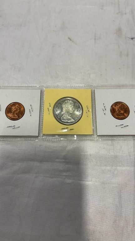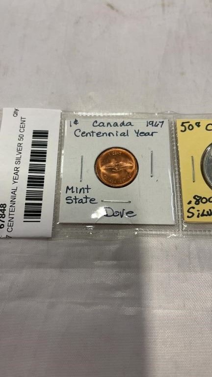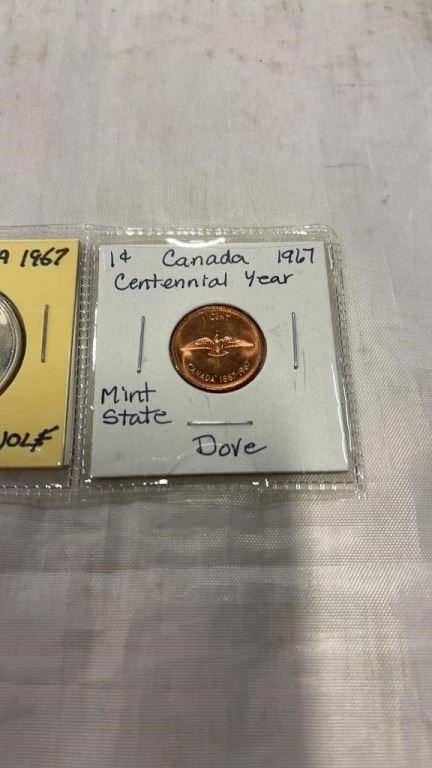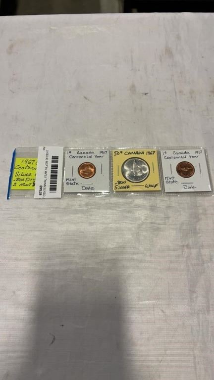 1967 CENTENNIAL YEAR SILVER 50 CENT WOLF .800 SILVER AND 2 MINT 1 CENT DOVE