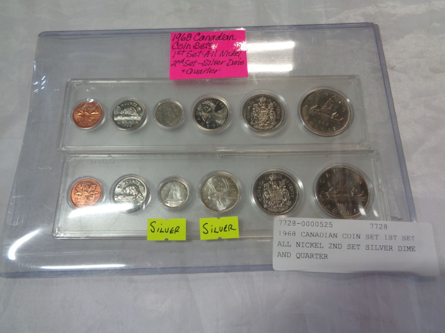 1968 CANADIAN COIN SET 1ST SET ALL NICKEL 2ND SET SILVER DIME AND QUARTER