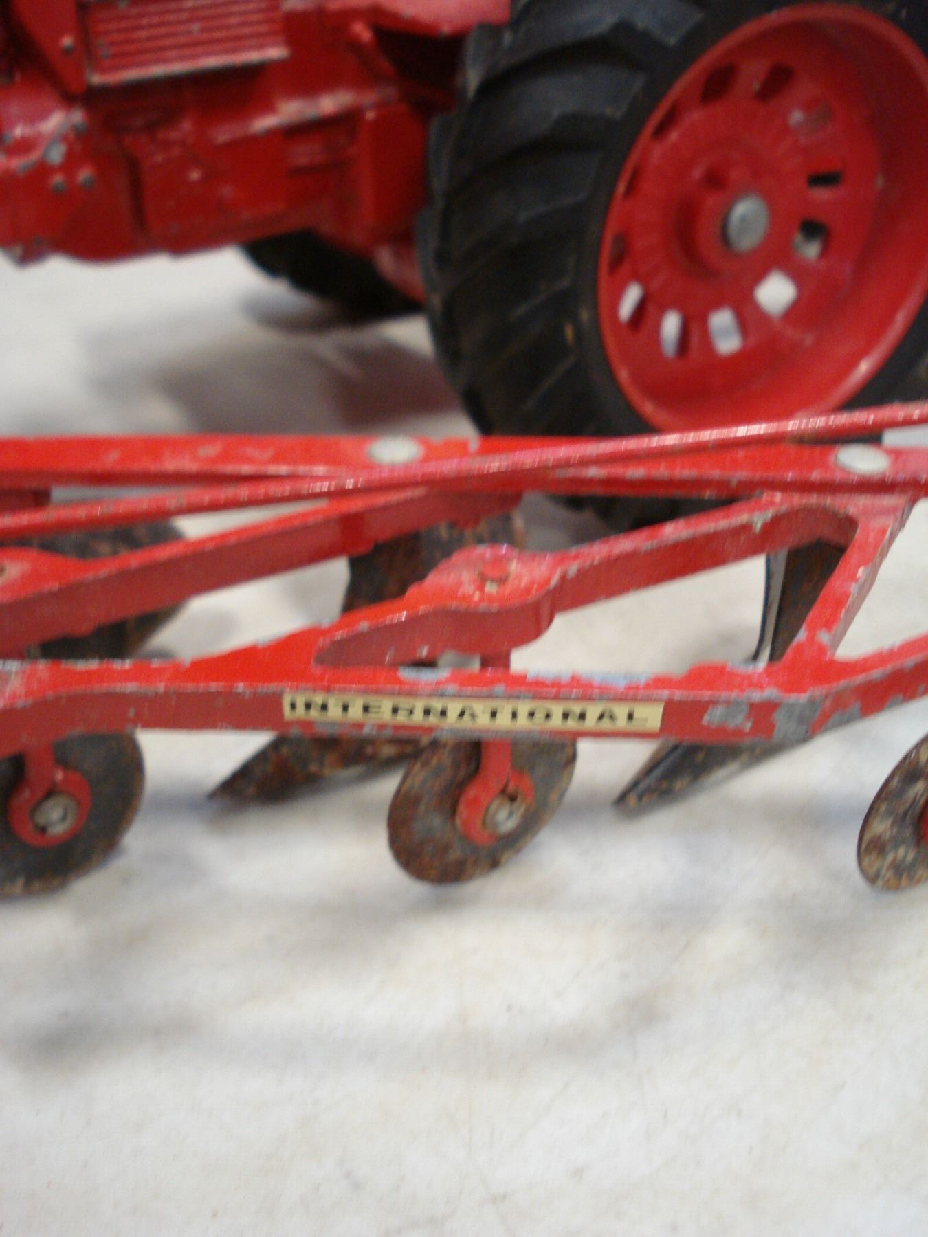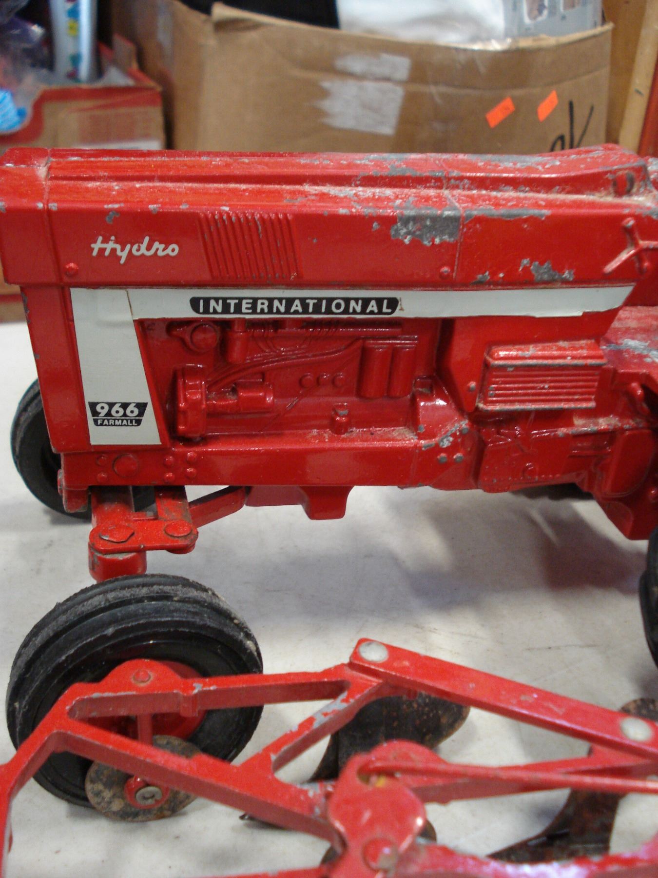 1970 TONKA FORKLIFT DIECAST AND ANTIQUE INTERNATIONAL TRACTOR WITH ATTACHMENTS