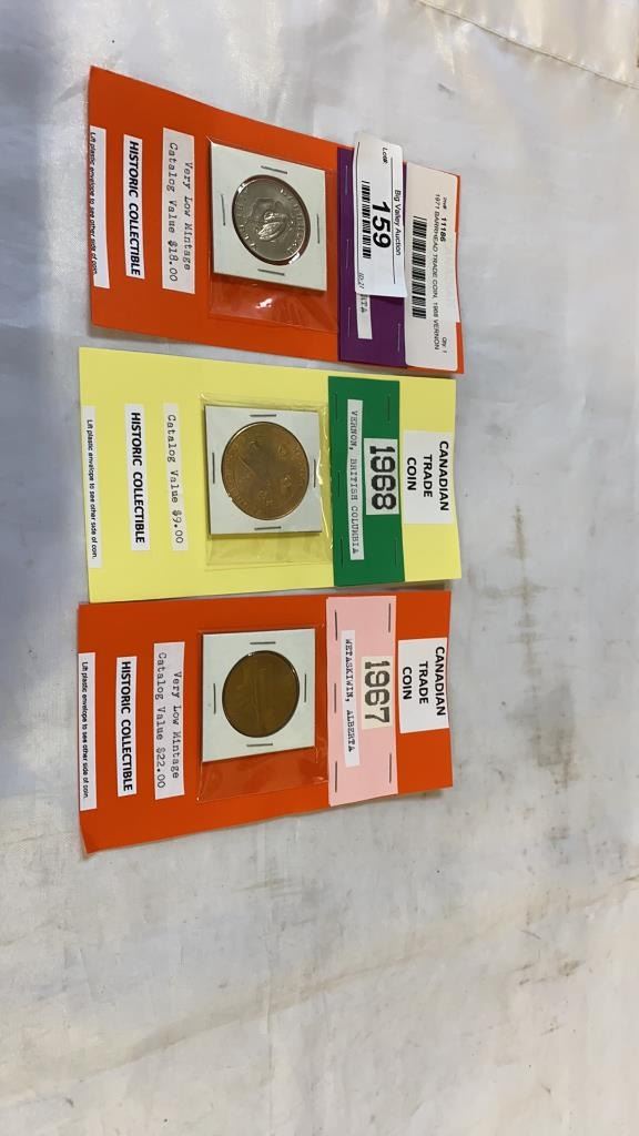 1971 BARRHEAD TRADE COIN, 1968 VERNON TRADE COIN, AND 1967 WETA SKIWIN TRADE COIN - TOTAL CATALOGUE VALUE $50