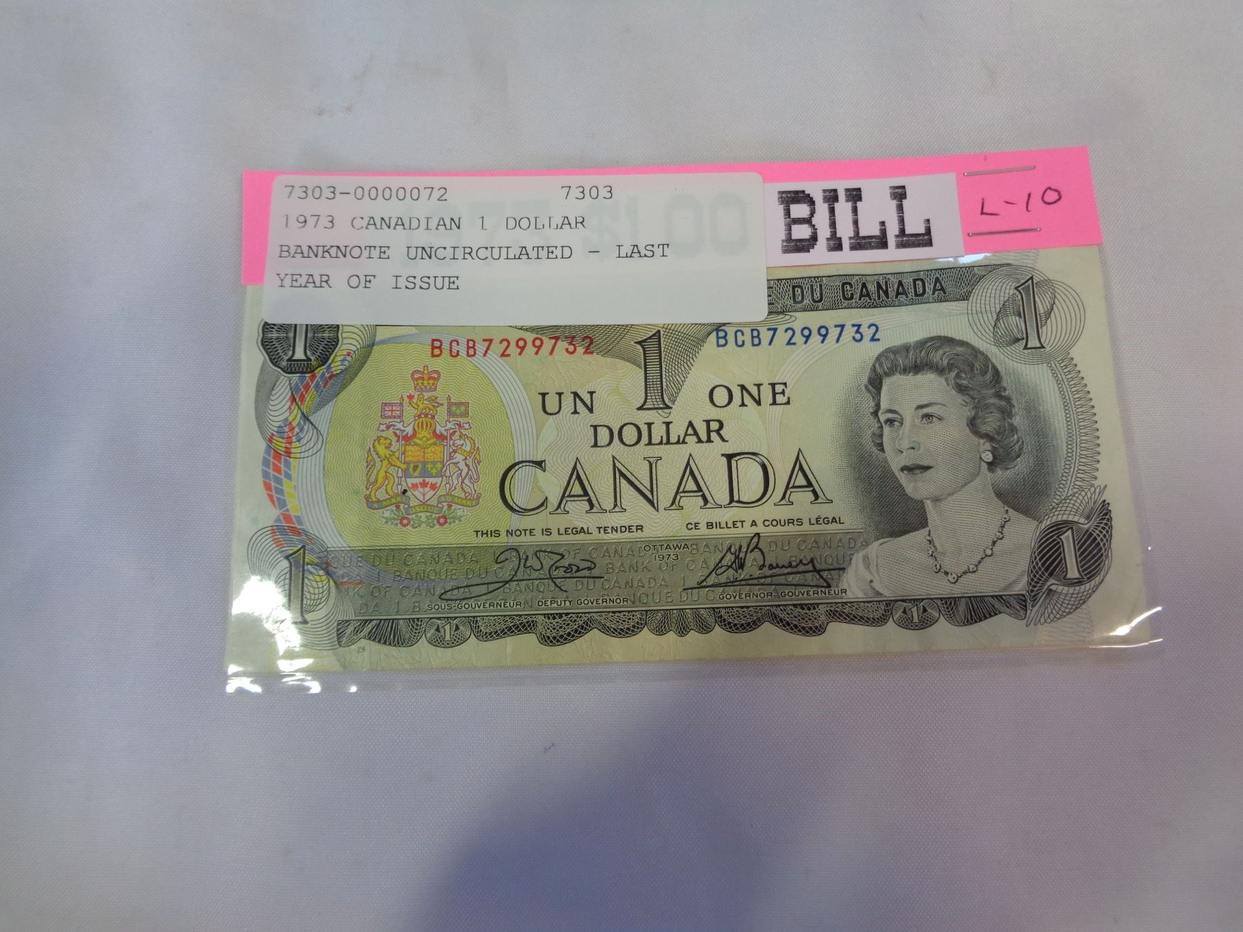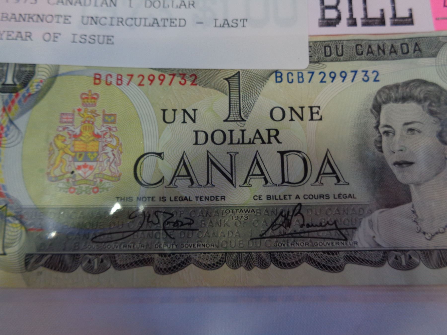 1973 CANADIAN 1 DOLLAR BANKNOTE UNCIRCULATED - LAST YEAR OF ISSUE
