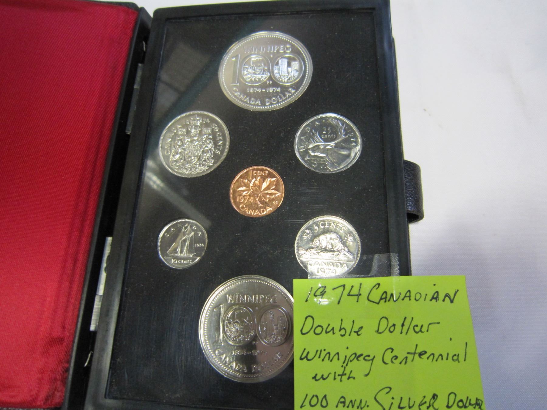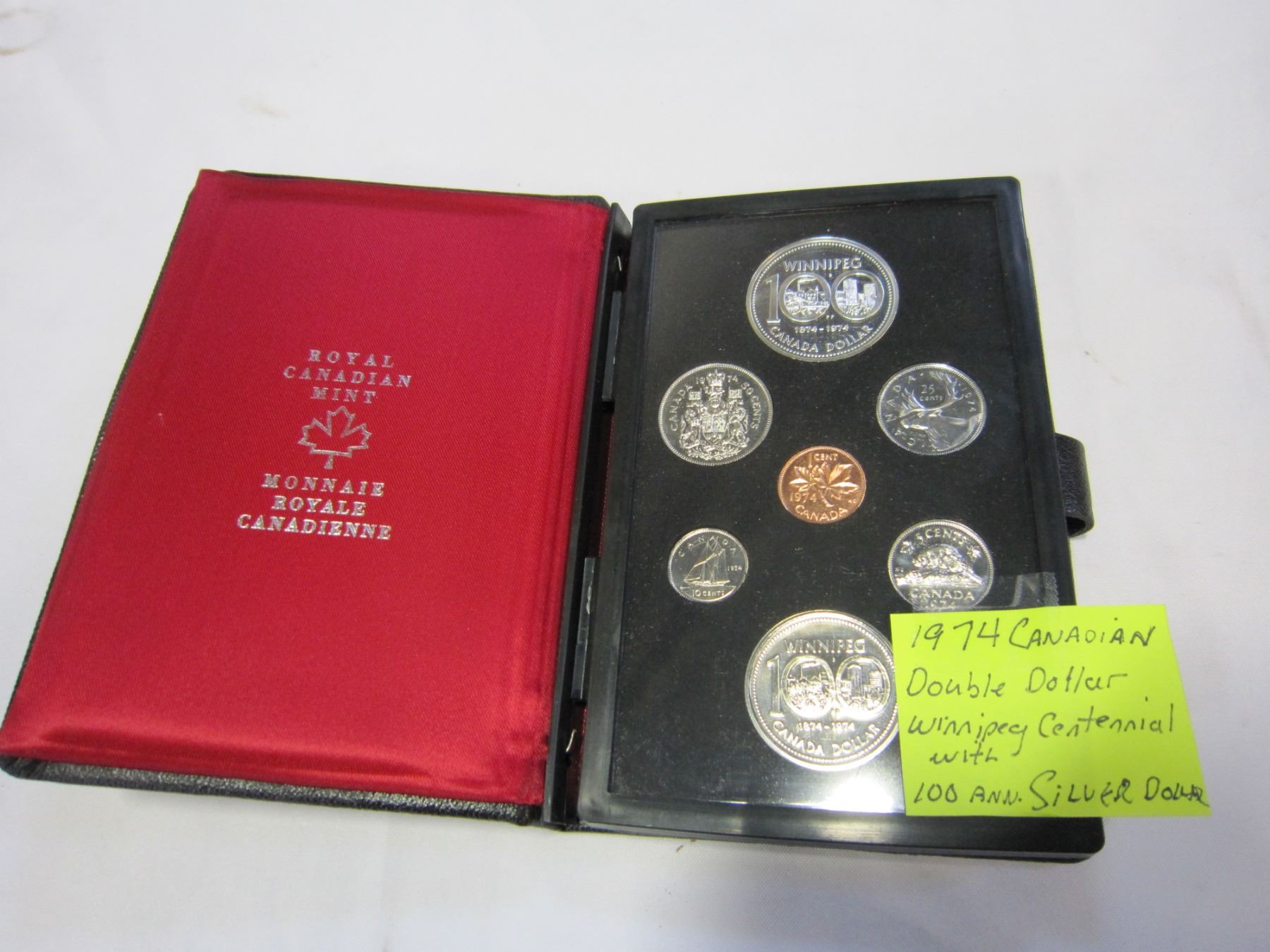 1974 CANADIAN DOUBLE DOLLAR WINNIPEG CENTENNIAL WITH 100TH ANNIVERSARY SILVER DOLLAR