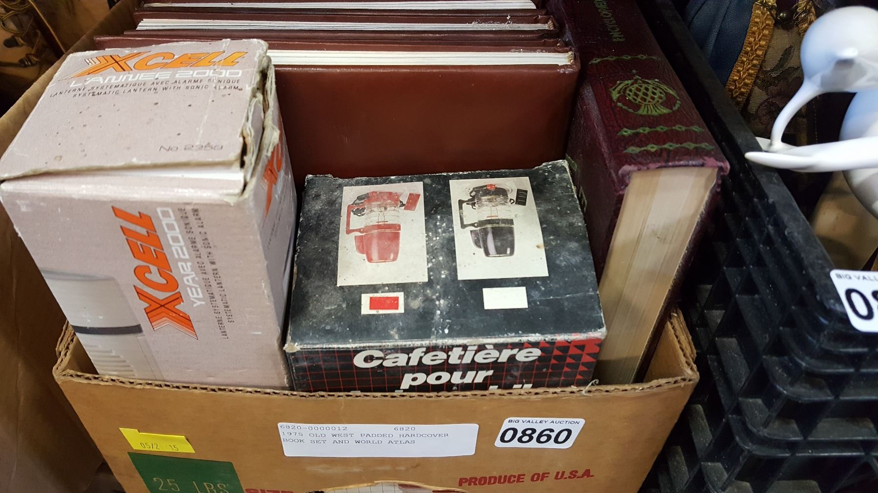 1975 OLD WEST PADDED HARDCOVER BOOK SET AND WORLD ATLAS