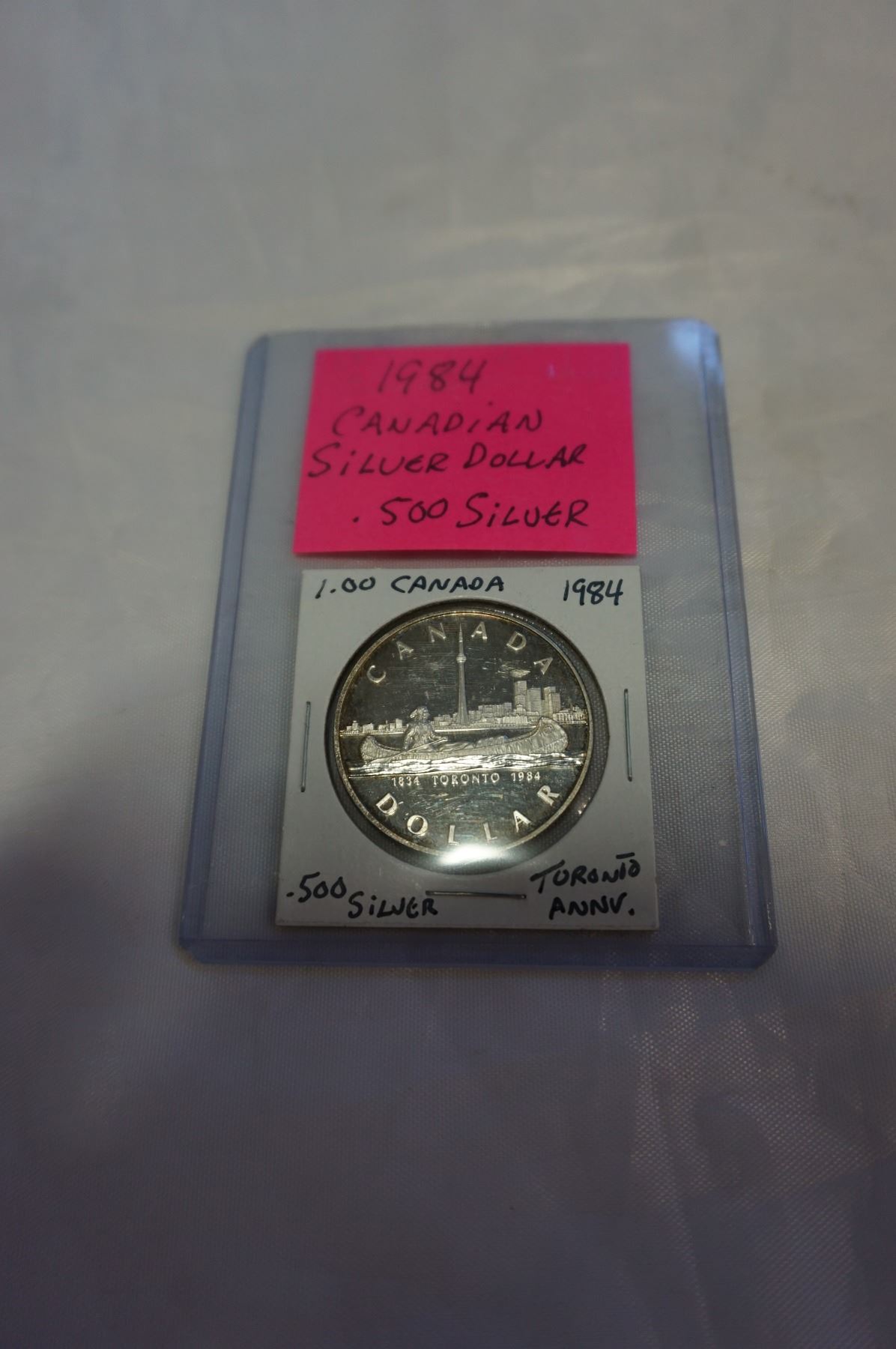 1984 CANADIAN SILVER DOLLAR .500 SILVER, TORONTO 100 ANNIVERSARY