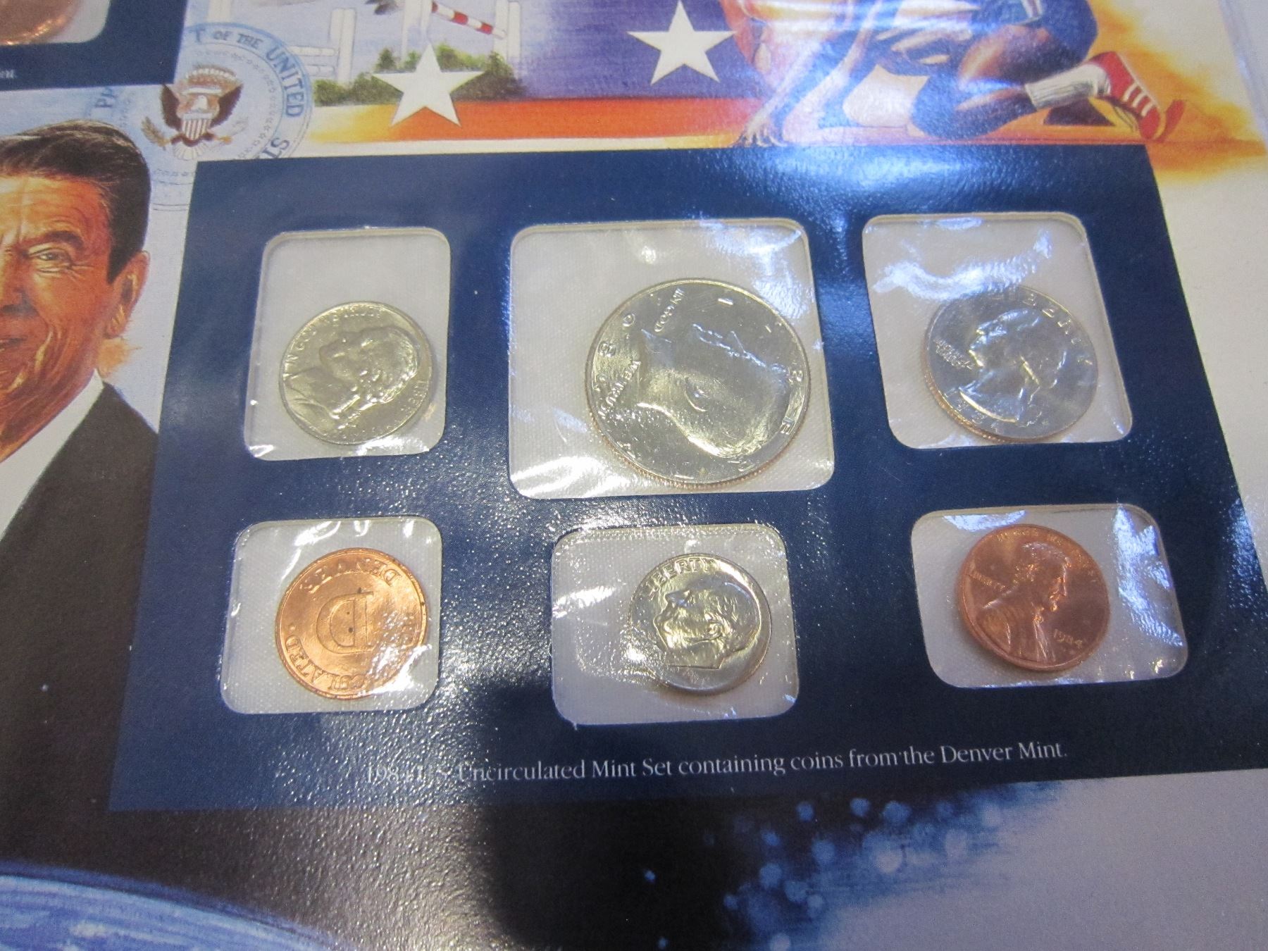 1984 USDA UNCIRCULATED MINT SETS, PHILIDALPHEA, DENVER, LA OLYMPICS WITH STAMP