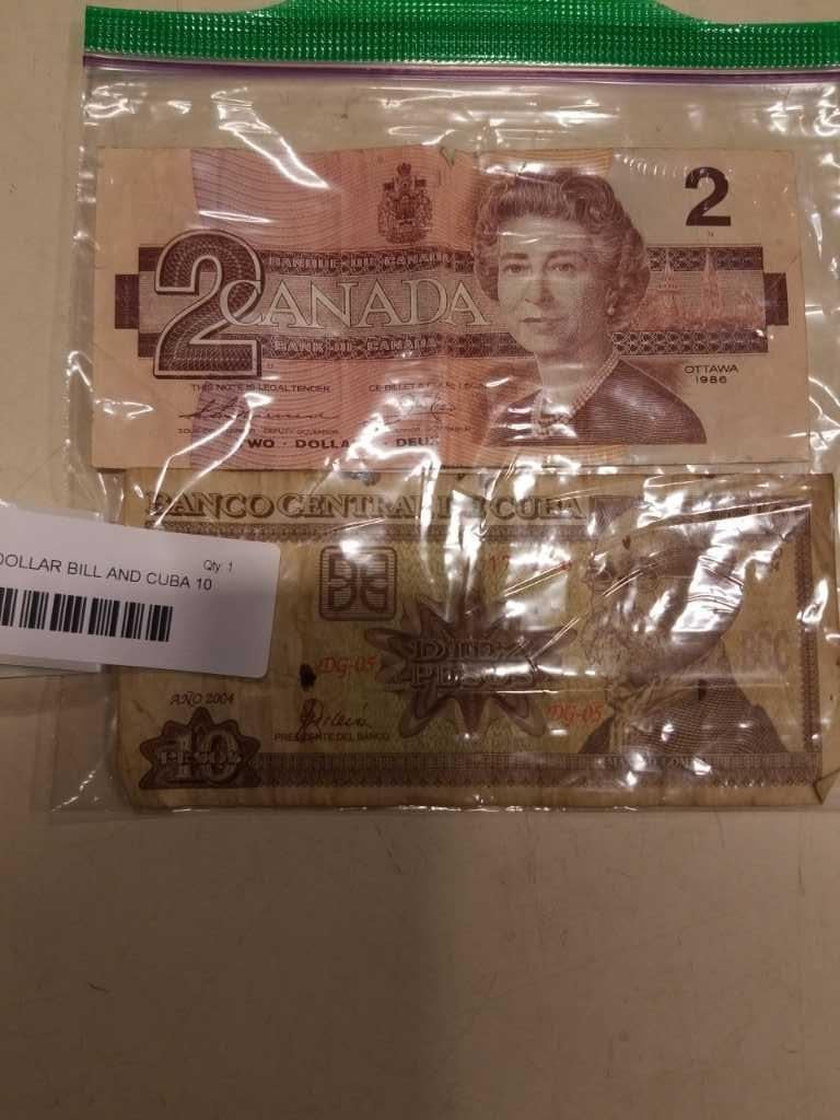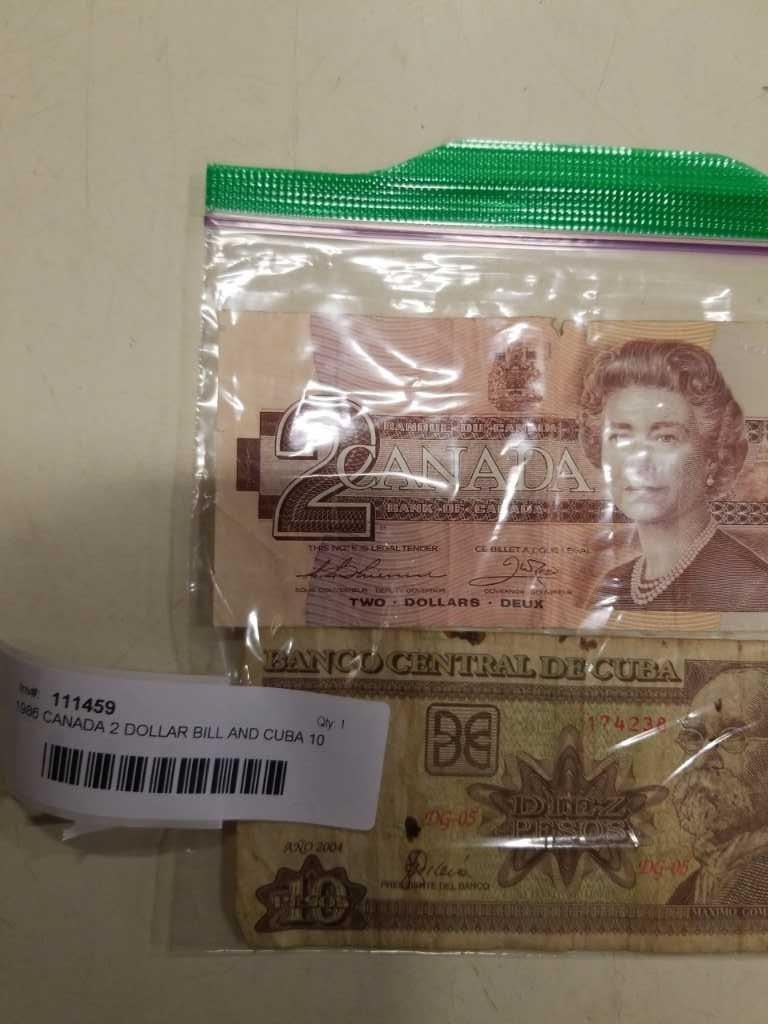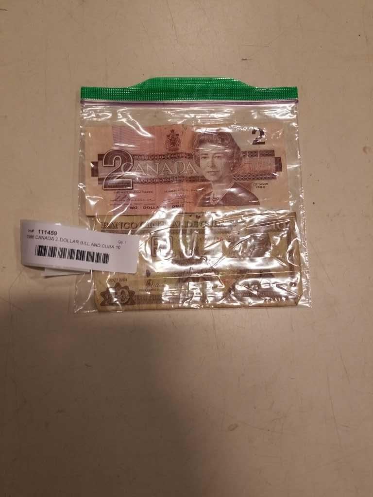 1986 CANADA 2 DOLLAR BILL AND CUBA 10 DOLLAR BILL