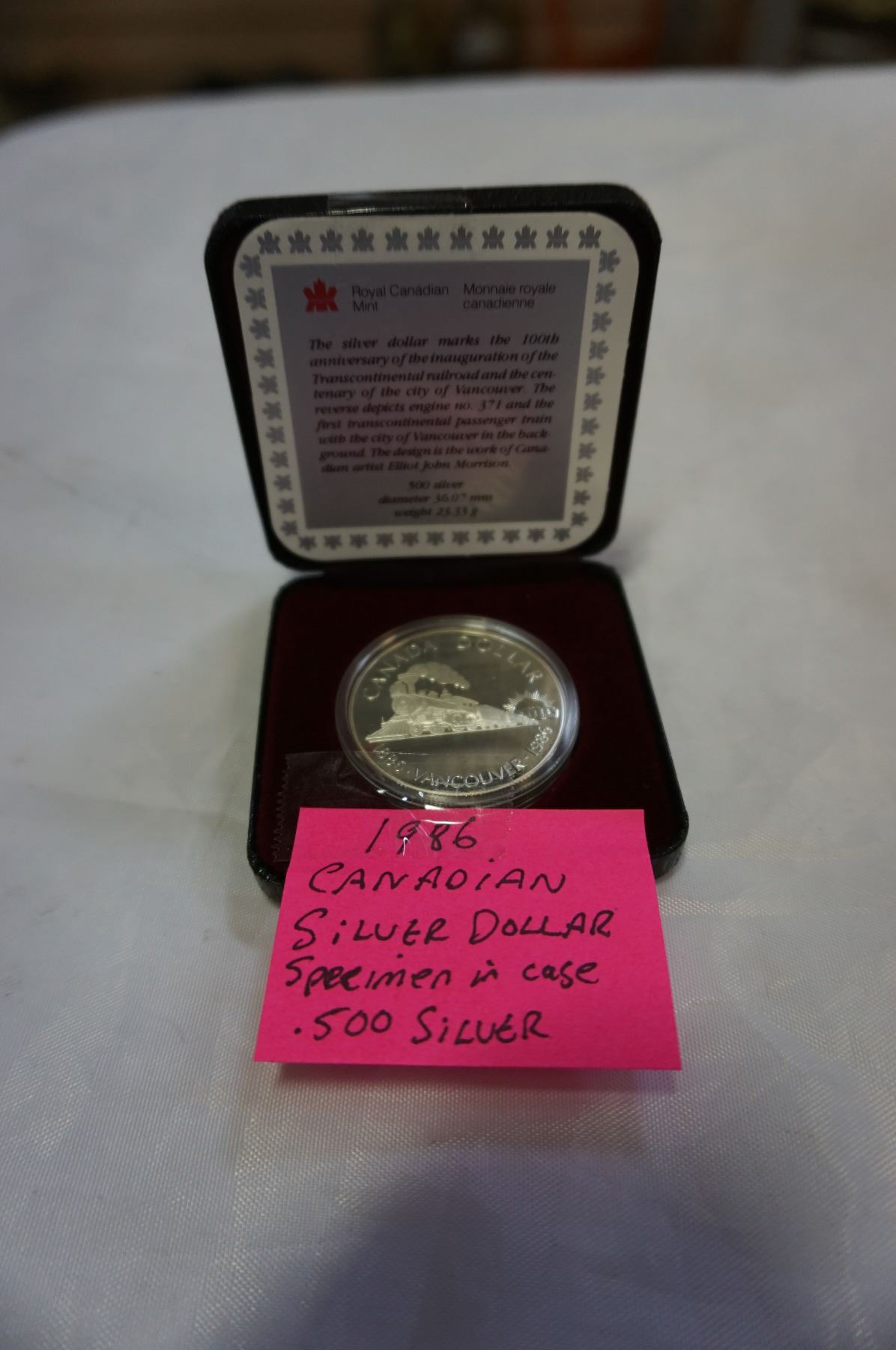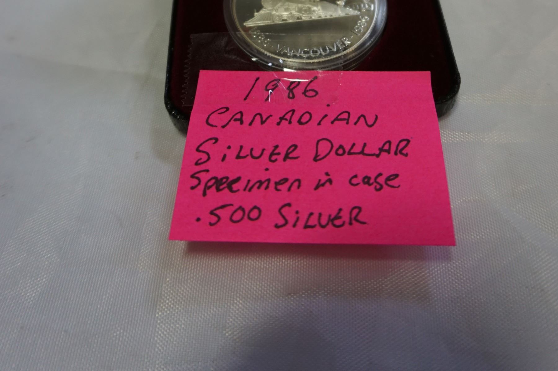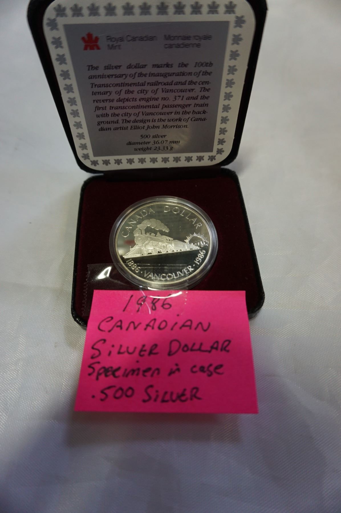 1986 CANADIAN SILVER DOLLAR SPECIMEN CASED DOLLAR .500 SILVER