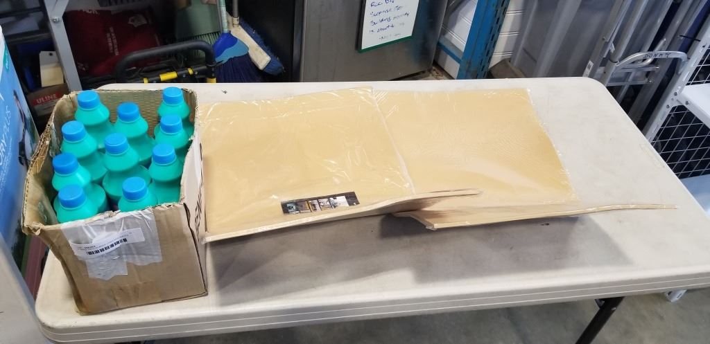 2 16X22 INCH RUBBER CRAFTING MATTS AND CASE OF NEW APPLICATION CLEANING SPRAY
