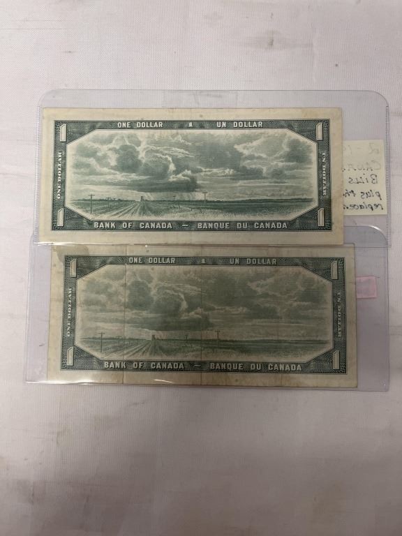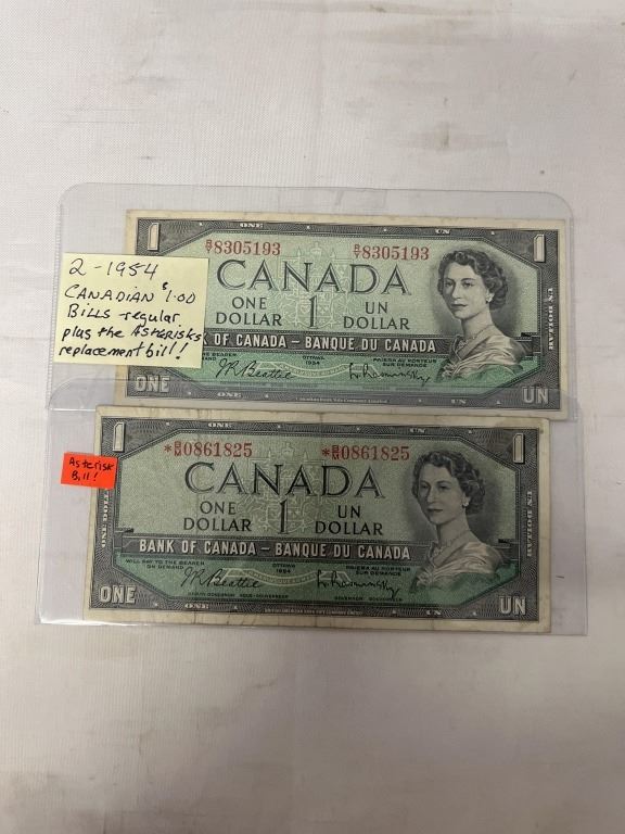 2 - 1954 CANADIAN $1 BILLS - REGULAR PLUS ASTERICKS REPLACEMET BILL