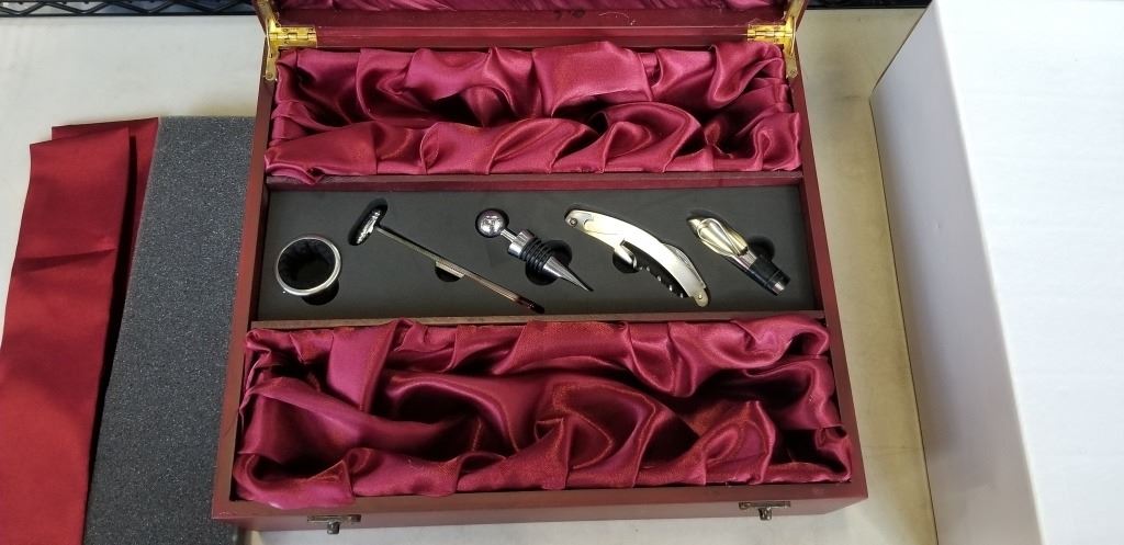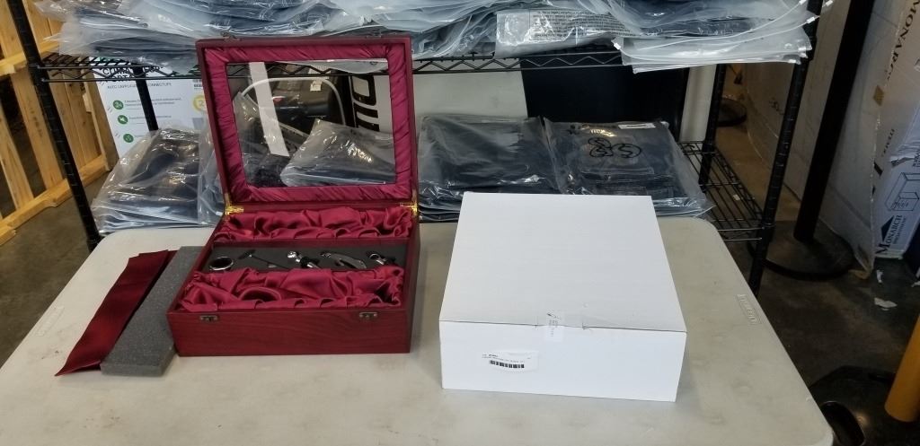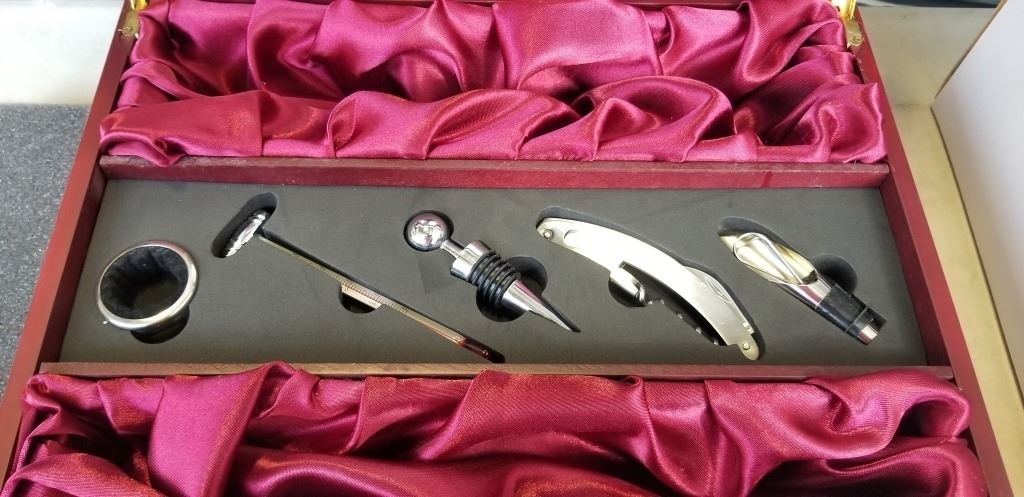 2 - 2 BOTTLE WINE HOLDER W/ CORKSCREW, POURER, THERMOMETER, AND DRIP RING