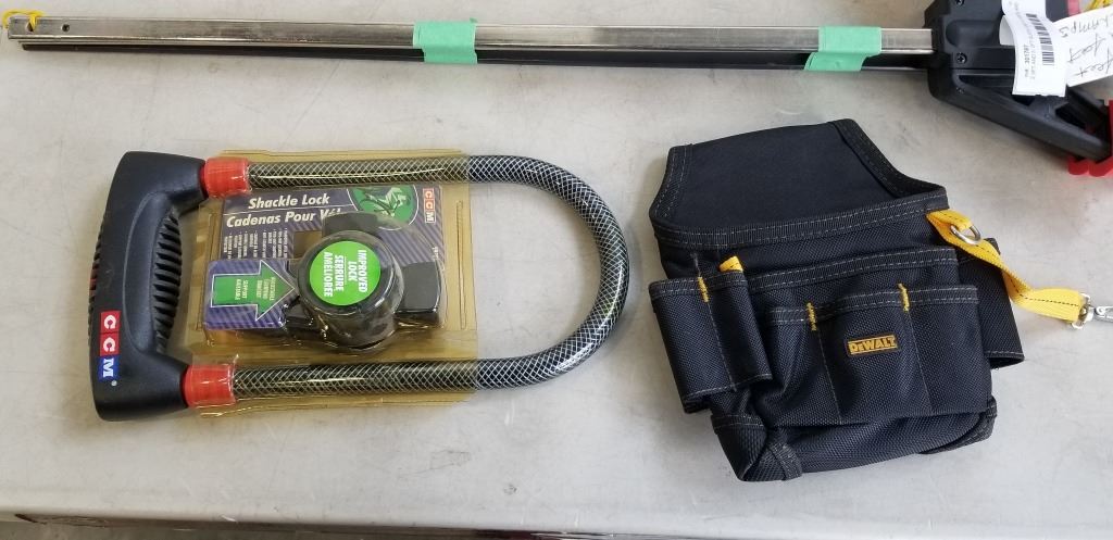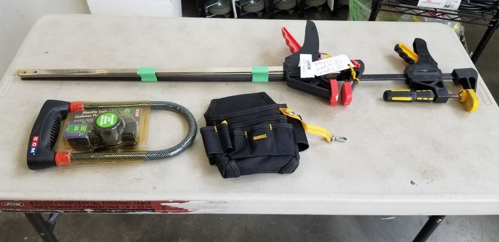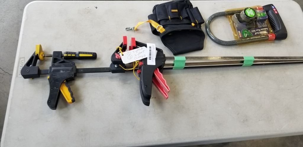2 3FT AND 2- 2FT QUICK GRIP CLAMPS AND DEWALT TOOL POUCH