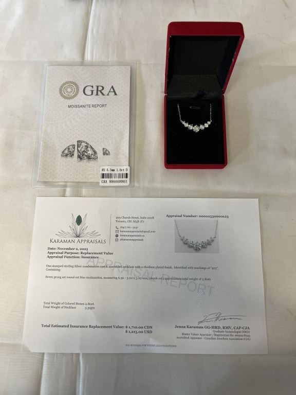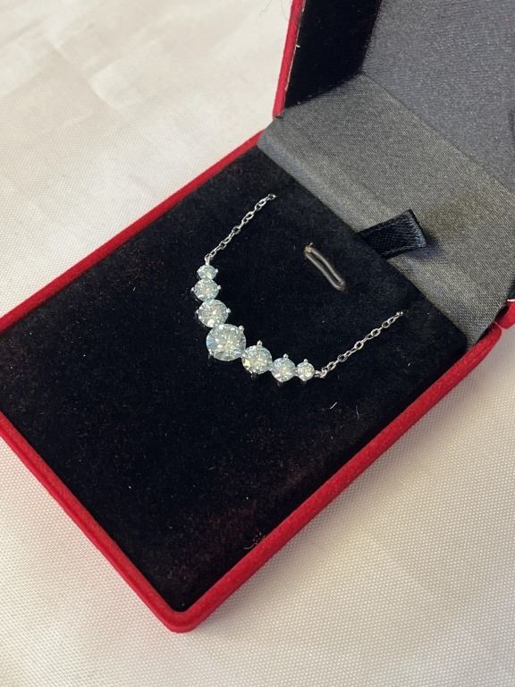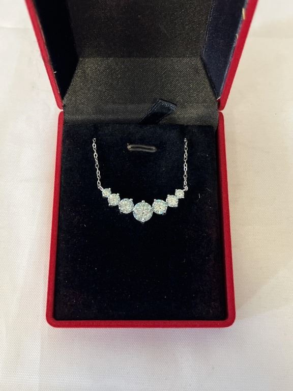2.80 CT TW GRA CERTIFIED ROUND BRILLIANT CUT MOISSANITE STONES VVS BLUE COLOR WITH THE 7 ROUND BRILLIANT CUT MOISSANITE STONES GRADUATING DOWN IN SIZE FROM CENTER STONE SET IN 925 SILVER PENDANT RETAIL VALUE $1,710.00