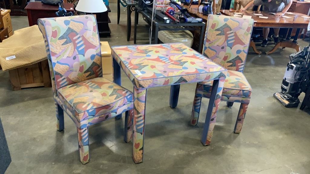 2 ABSTRACT DINING CHAIRS AND DINING TABLE