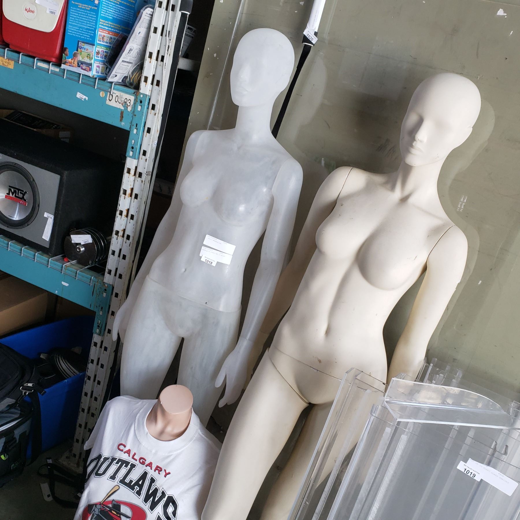 2 ADULT MANNEQUINS AND MANNEQUIN TORSO AND T-SHIRT