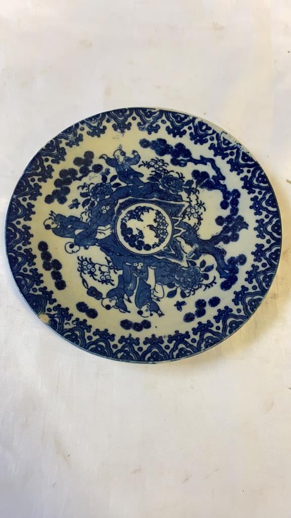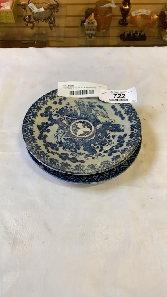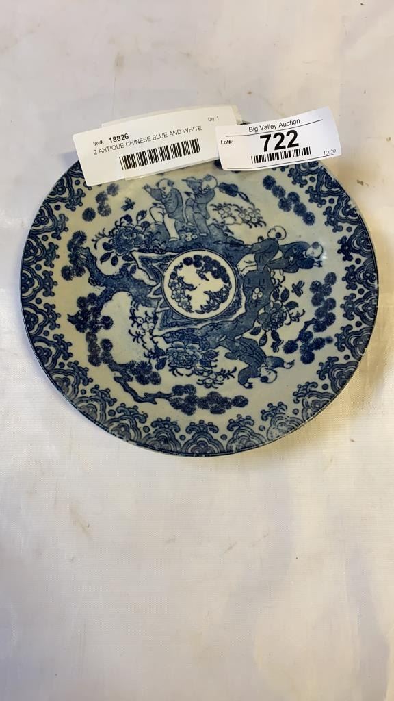 2 ANTIQUE CHINESE BLUE AND WHITE PLATES