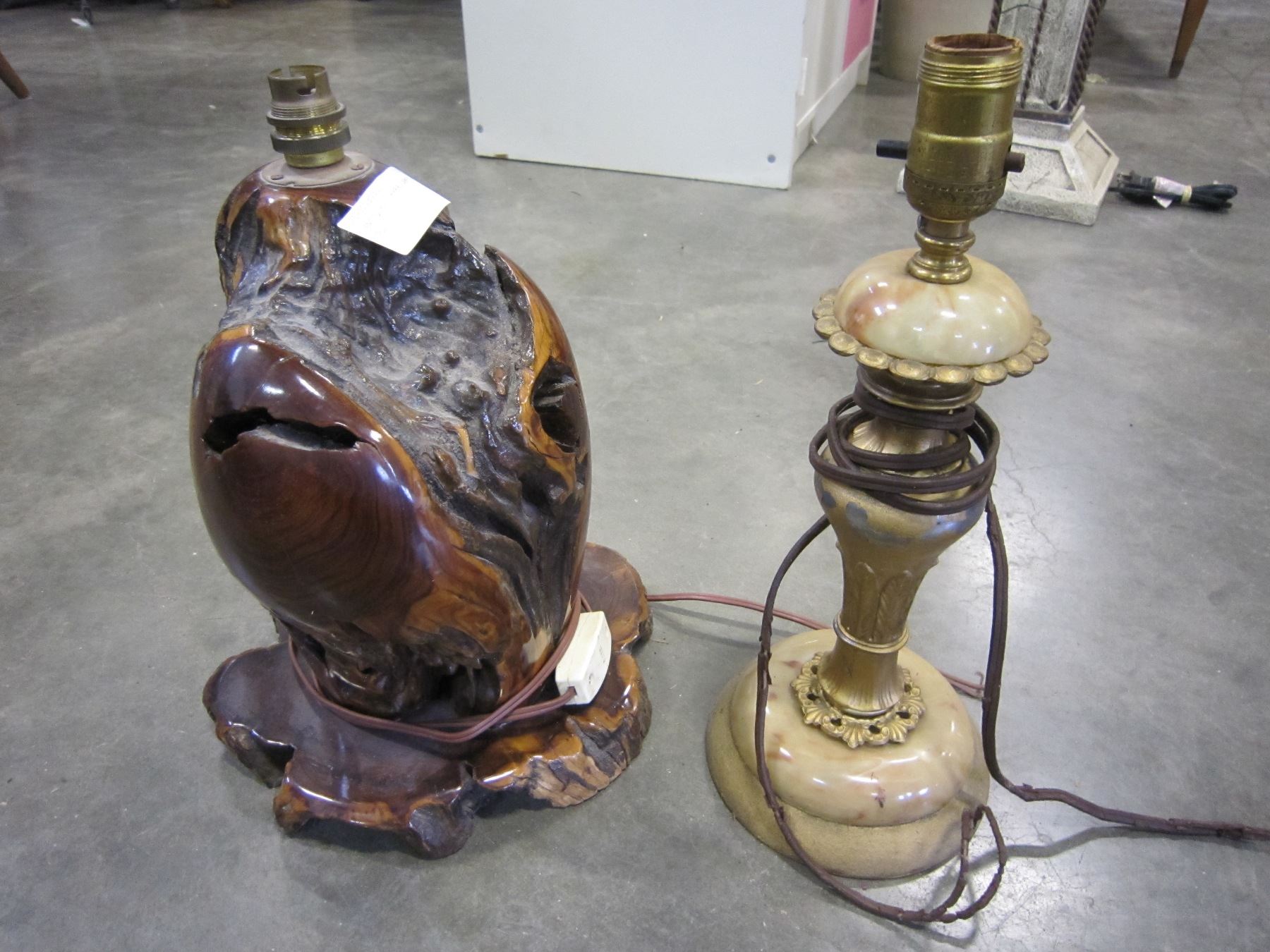 2 ANTIQUE COFFEE LAMPS - 1 BURL
