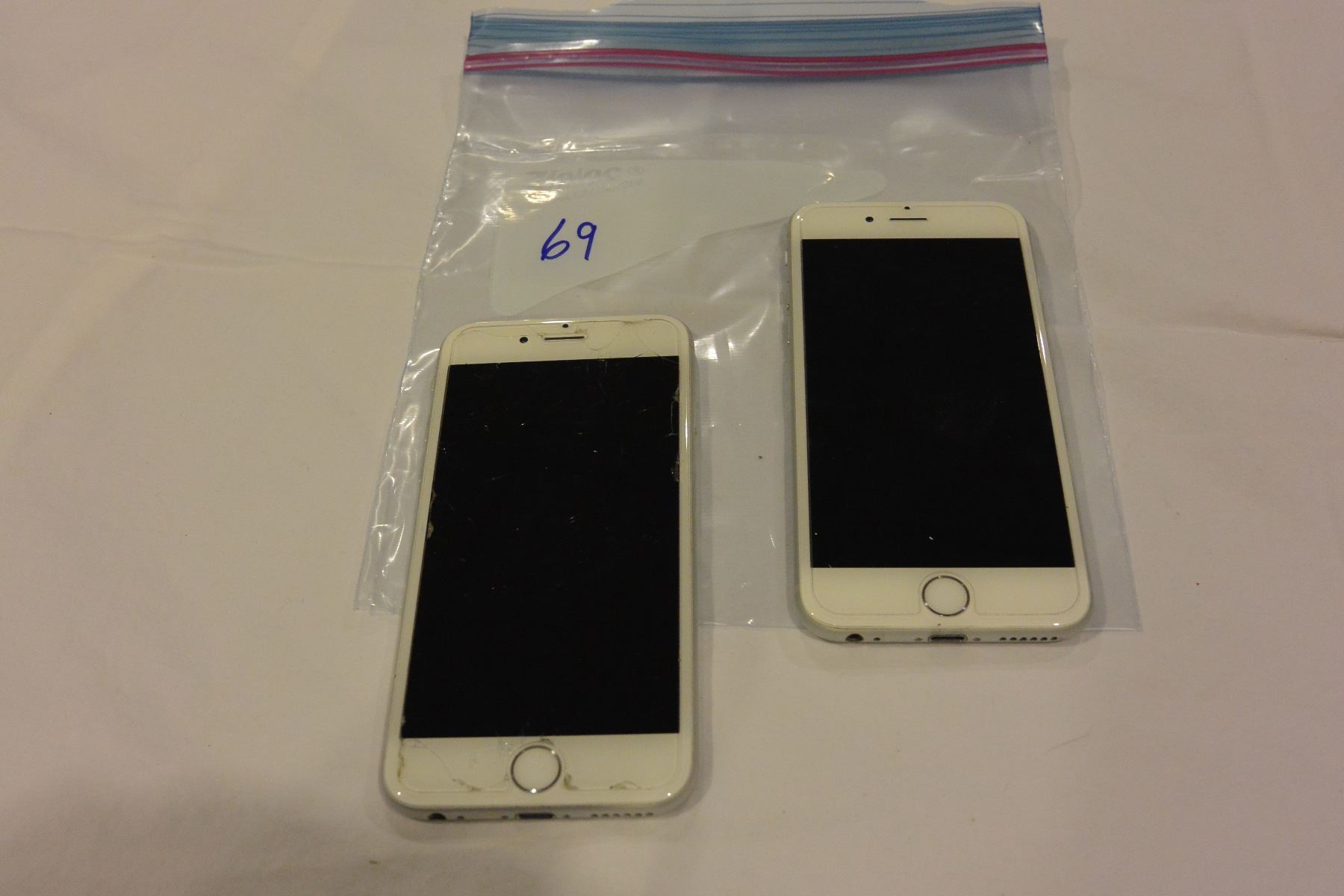2 APPLE IPHONE 6S SILVER, PREVIEW STRONGLY RECOMMENDED, ALL ITEMS ARE FINAL SALE, BUYER BEWARE, ITEMS MAY BE FOR PARTS OR REPAIR