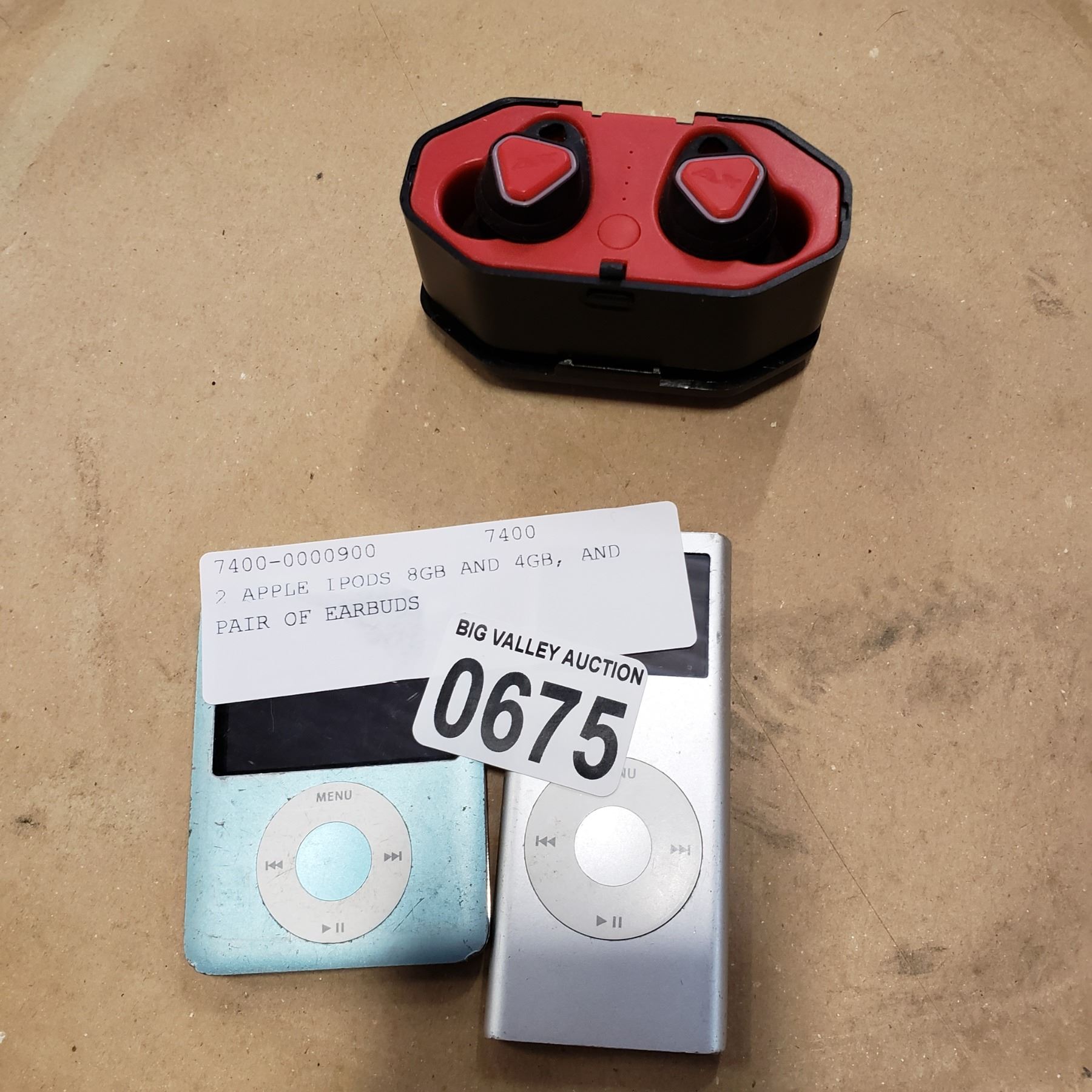 2 APPLE IPODS 8GB AND 4GB, AND PAIR OF EARBUDS
