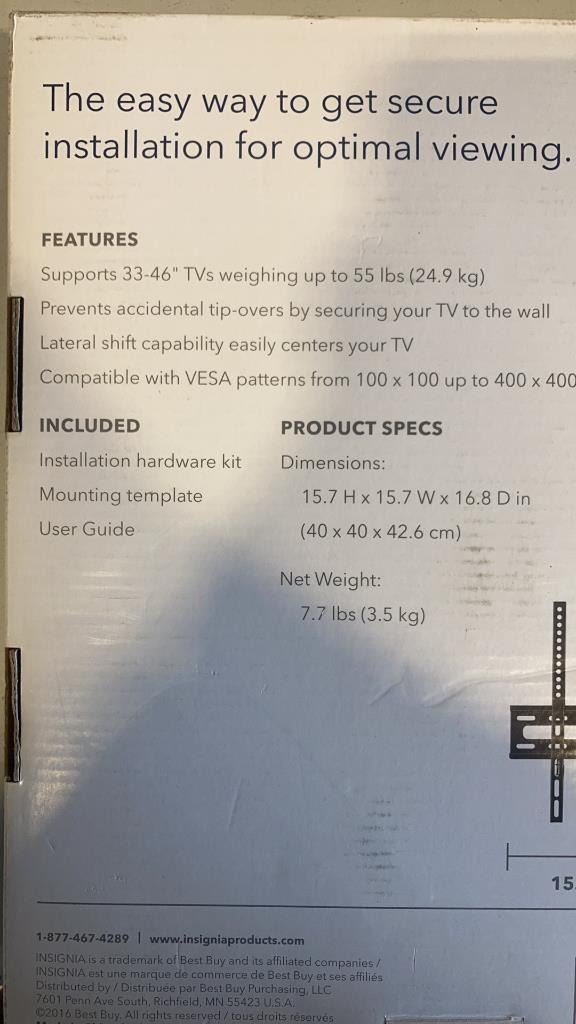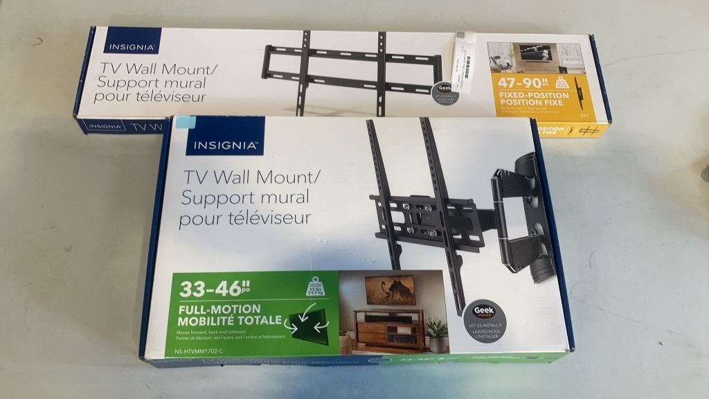 2 AS NEW INSIGNIA TV WALL MOUNTS 47"-90" FIXED AND 33"-46" FULL MOTION