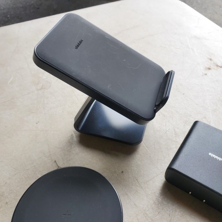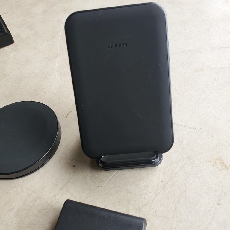 2 AS NEW UBIOLABS 15W MOBILE DEVICE BUNDLE CHARGING DOCKS ONE ADJUSTABLE, ONE PAD RETAIL $120 BOTH HAVE WIRELESS CHARGING